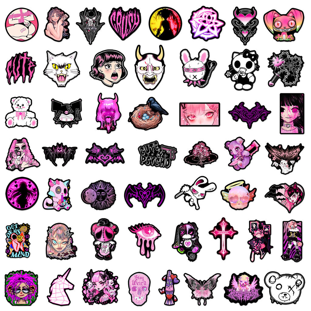 50PCS Adesivos Góticos Pretos E Rosa À Prova D'água Para Grafite De Capacete De Bicicleta Decalques De Lápis LanLanStickersWorld