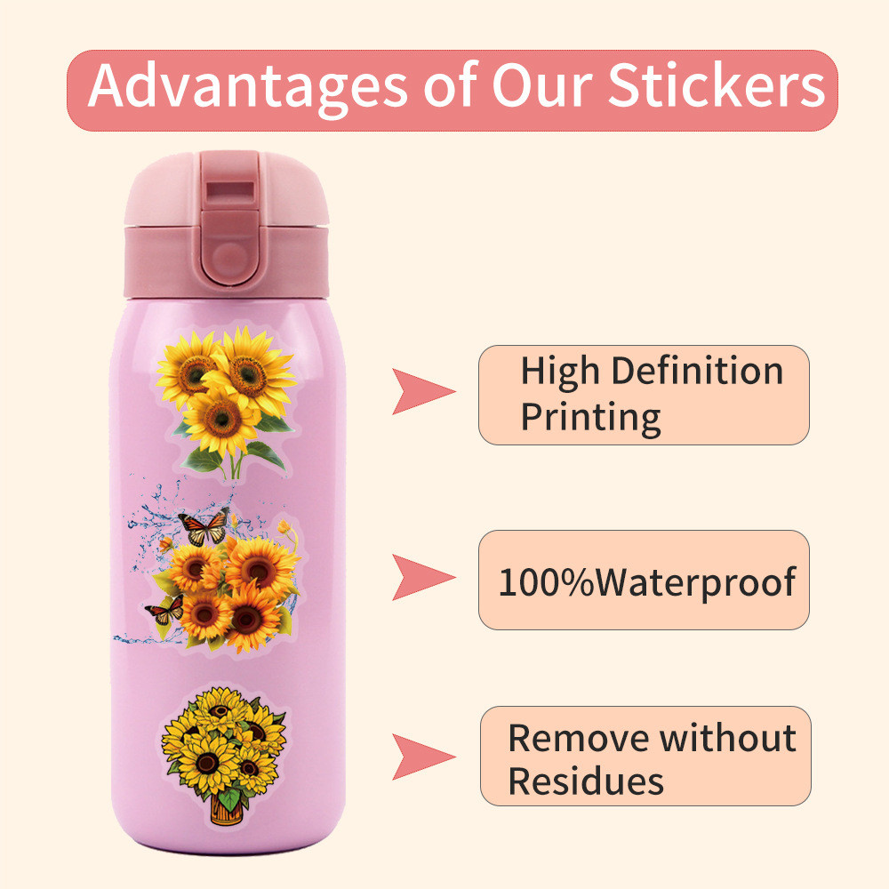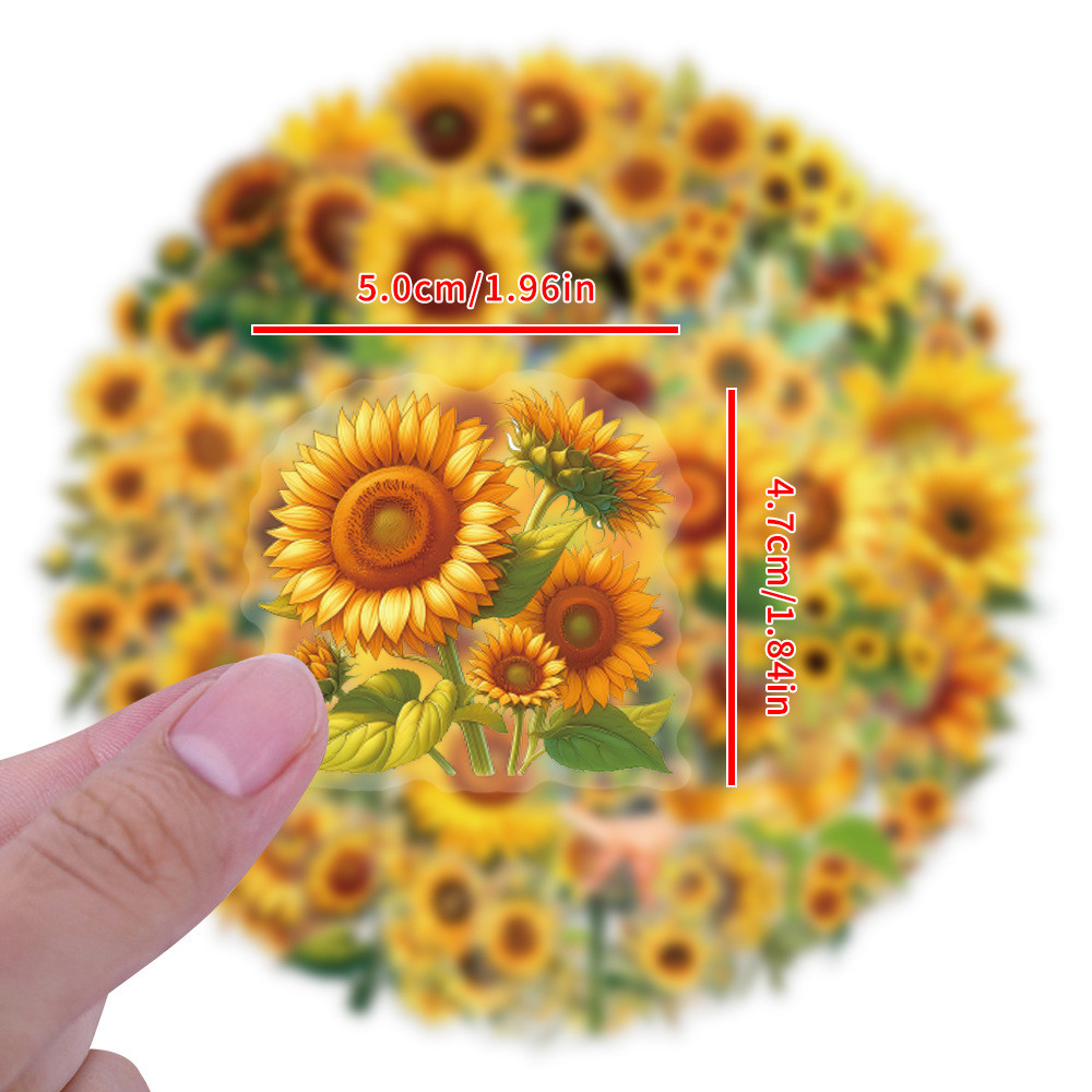 Pacote De Adesivos De Girassol Transparentes De 60 Unidades-PET À Prova D'água , Suprimentos De Manual Para Decoração De