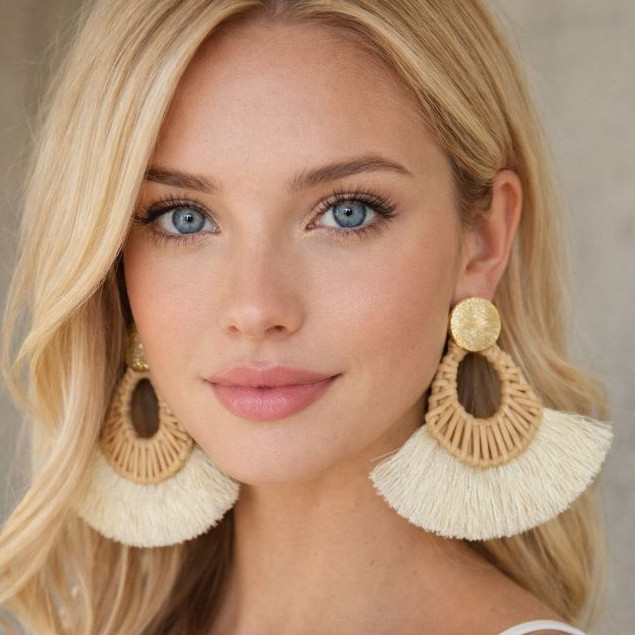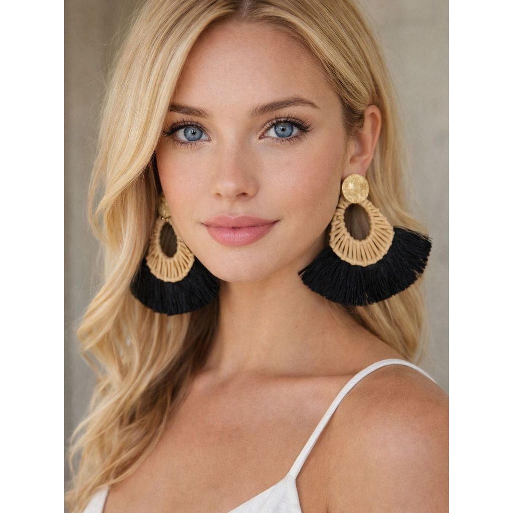 BRILHO ELISA - Brincos de borla trançada com palha e vime, perfeitos para o carnaval 6-4