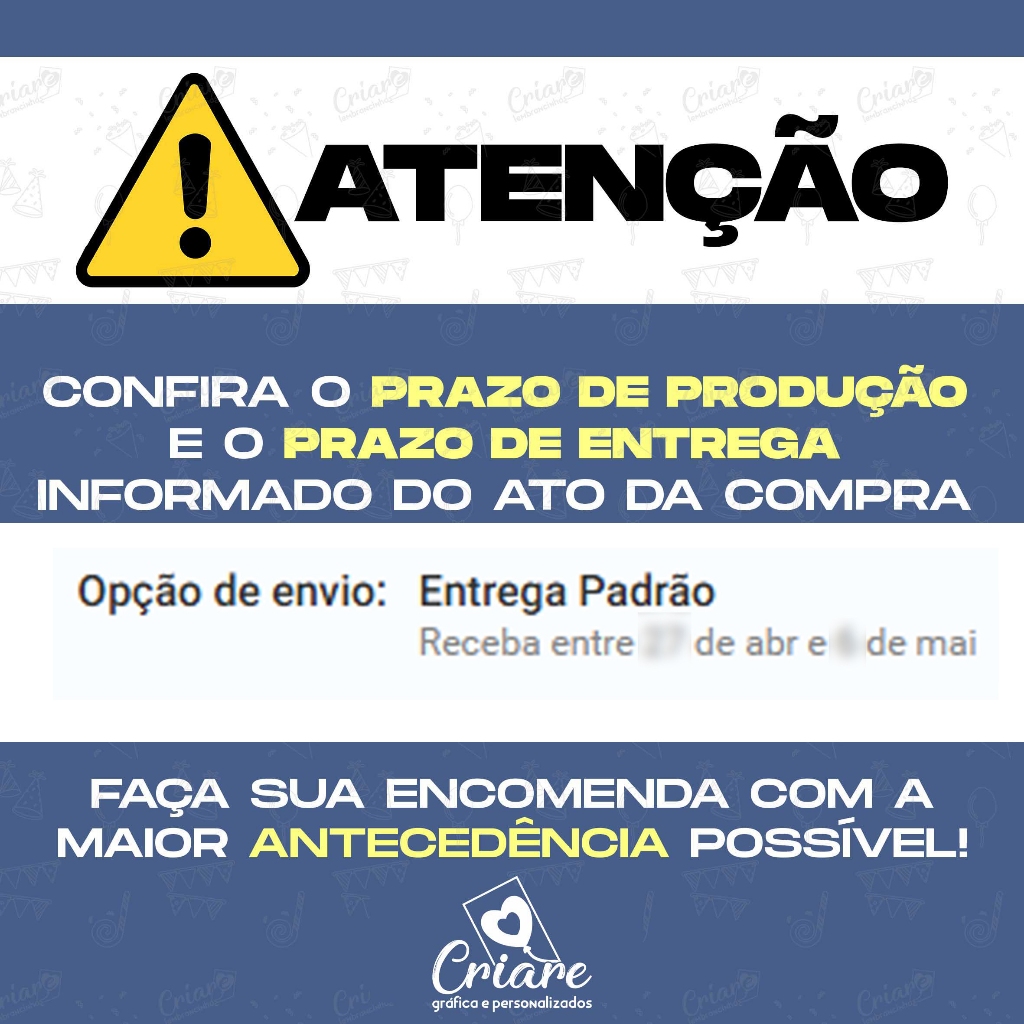 Sob encomenda: envio após 10 dias da compra