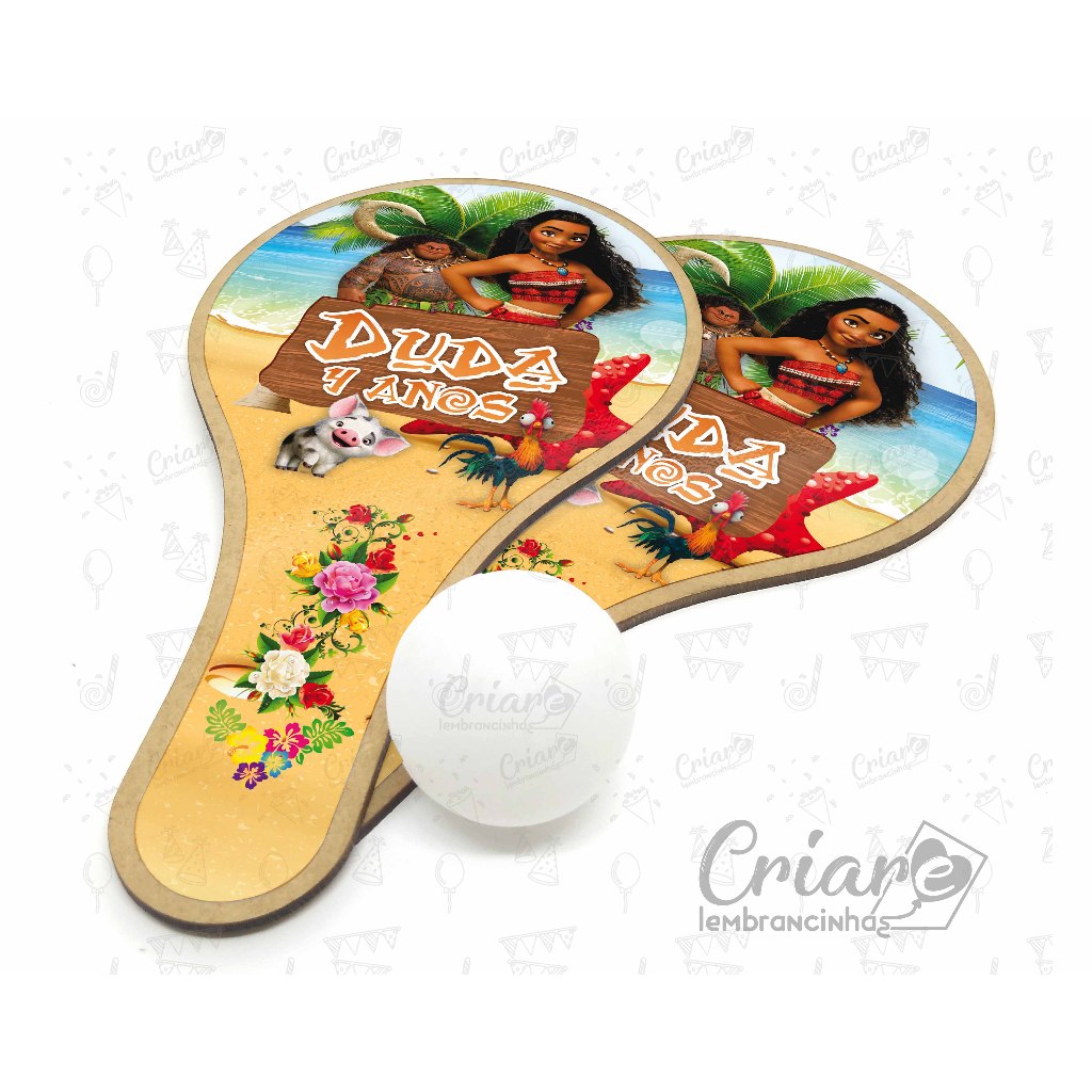 5, 10, 15 ou 20 unid - Kit Raquete De Ping Pong + bolinha - Moana (modelo 2) - Lembrancinha PERSONALIZADA.