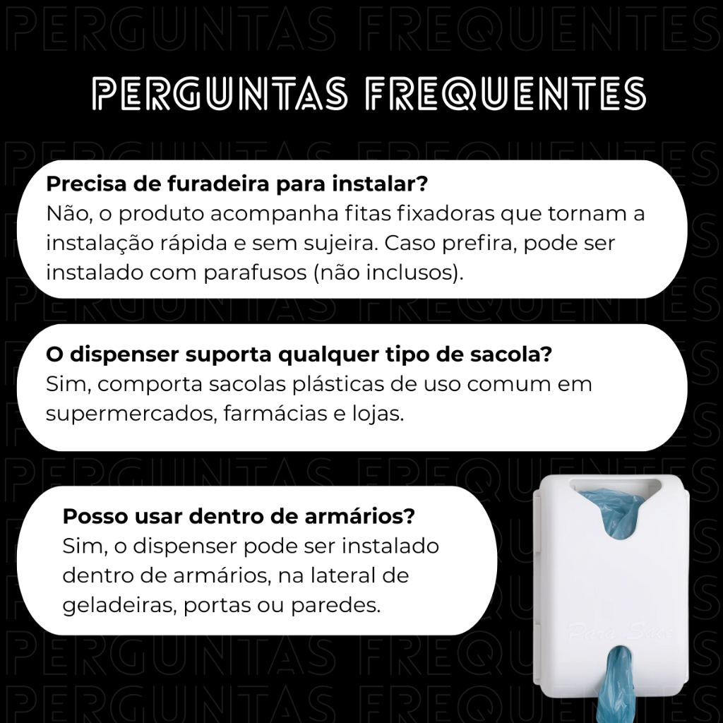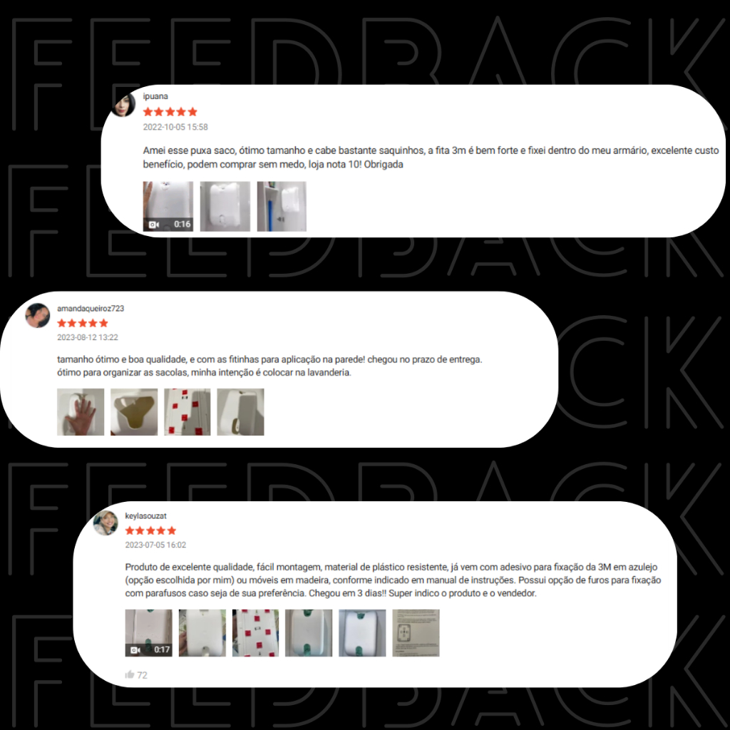 Puxa Saco Dispenser para Sacolas Plásticas com fixação adesiva 3M com Várias cores