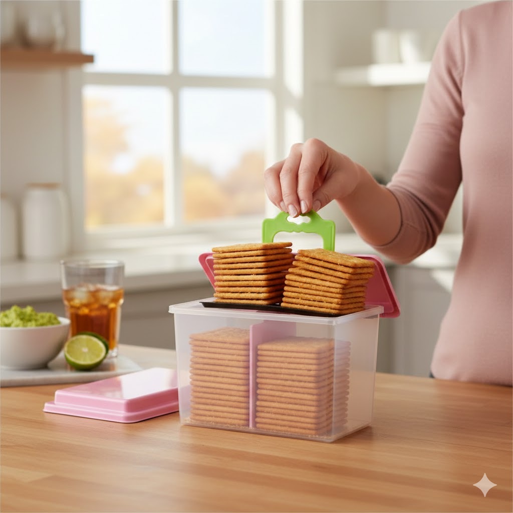 Porta Biscoito Bolacha Pote com Puxador Organizador Multiuso com Várias cores