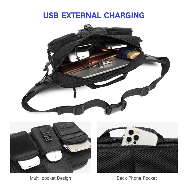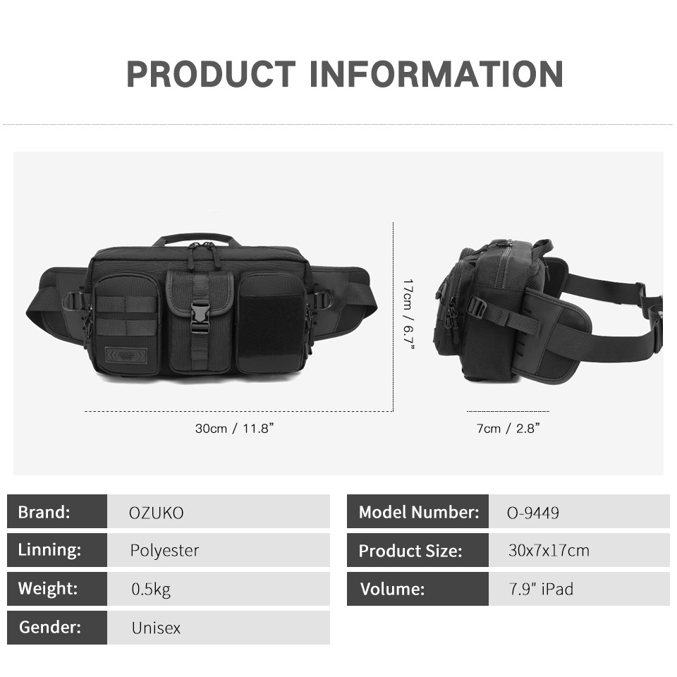 OZUKO Pochete Masculina Impermeável Com Grande Capacidade Para Esportes Ao Ar Livre