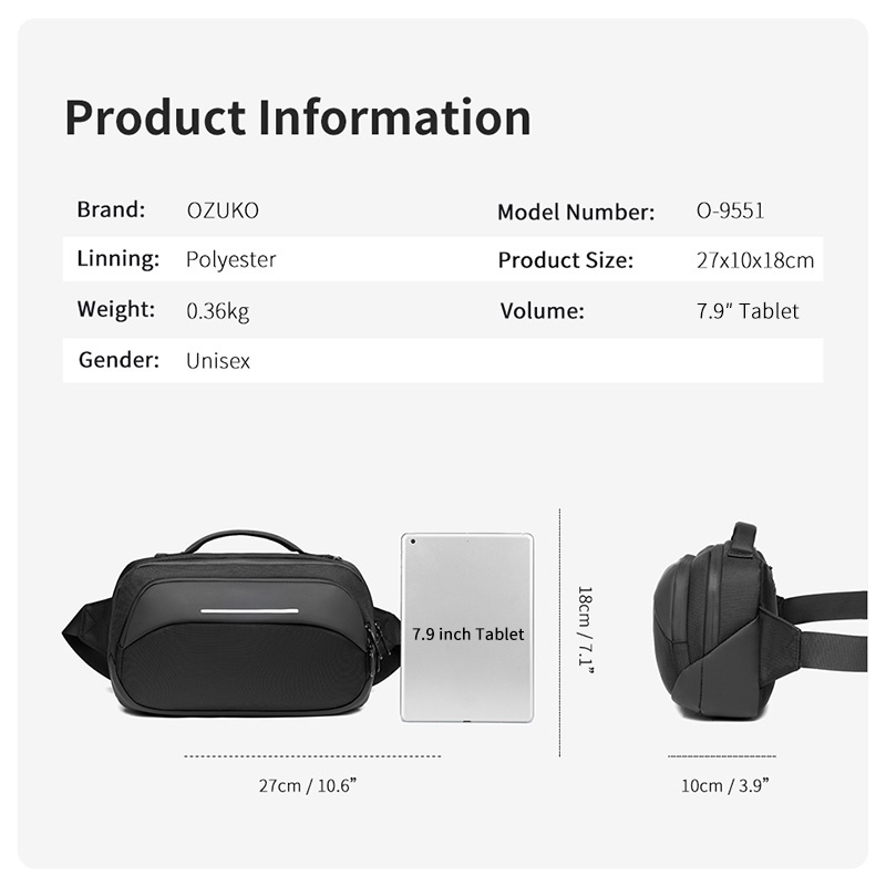 OZUKO Homens Oxford À Prova D'água Sacos De Cintura Leves