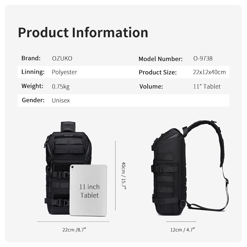 OZUKO Sacos De Grande Capacidade Para Homens Ombro Com Múltiplos Bolsos À Prova D'água