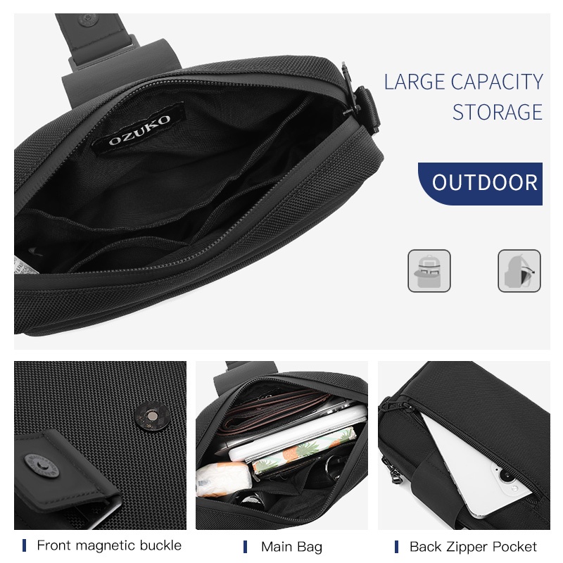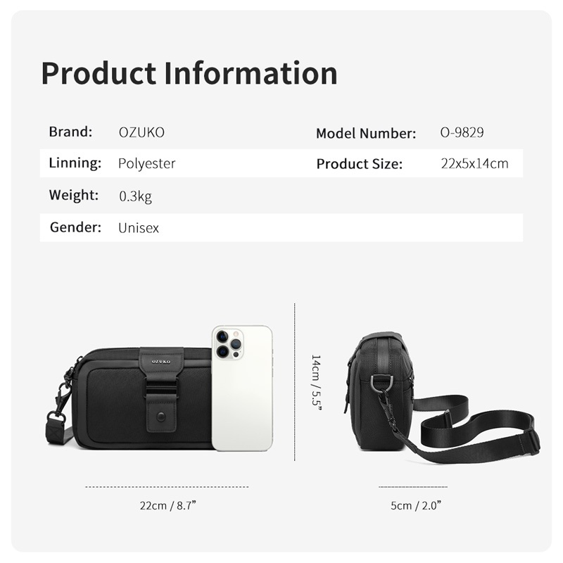 OZUKO Moda Bolsa De Ombro Masculina Impermeável Leve Pequena Crossbody