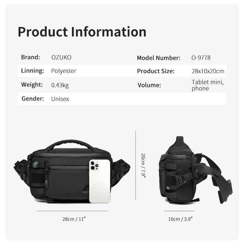 OZUKO Saco De Cintura Para Homens Ao Ar Livre Sacos De Grande Capacidade Com Vários Bolsos À Prova D'água Bússola