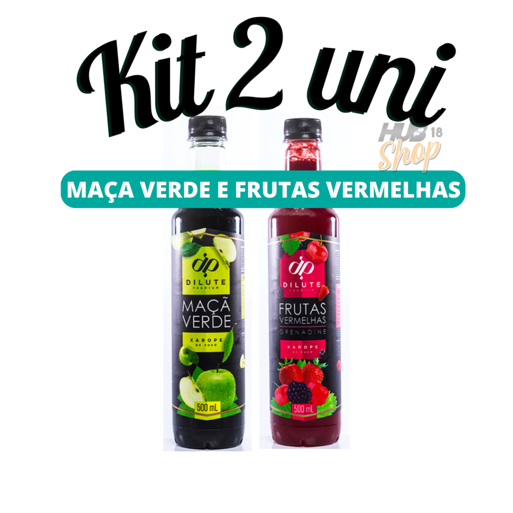 Kit 2 Xaropes Dilute para Drink Soda Italiana Gin - Maça Verde e Frutas Vermelhas