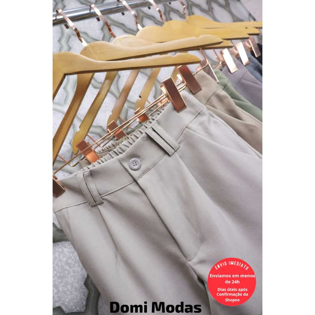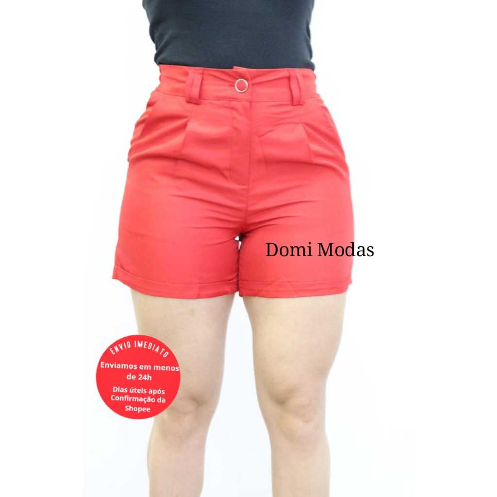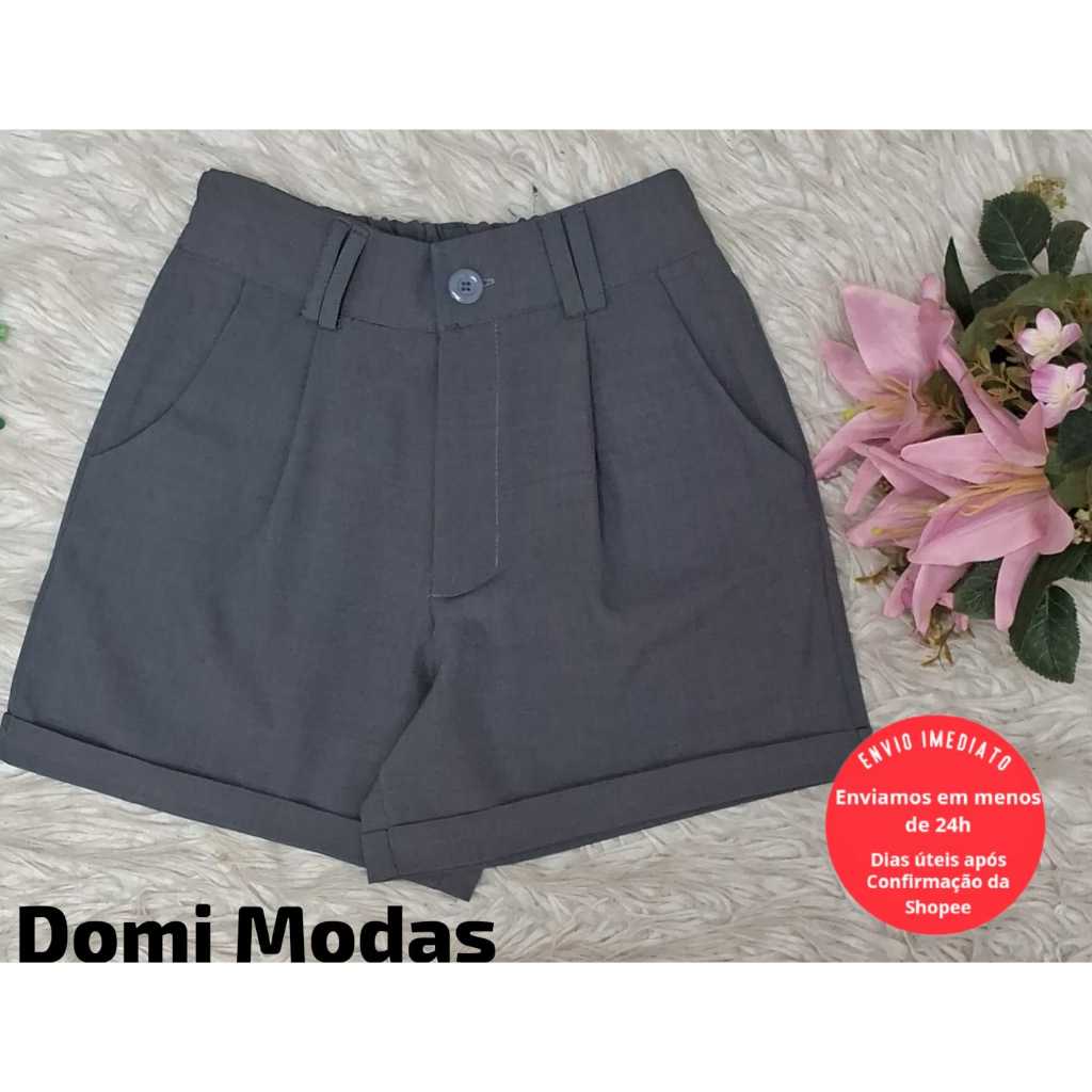 Domi Modas Shorts Feminino Luis Twill Barra Italiana Cintura Alta com Elástico Elegante LT183