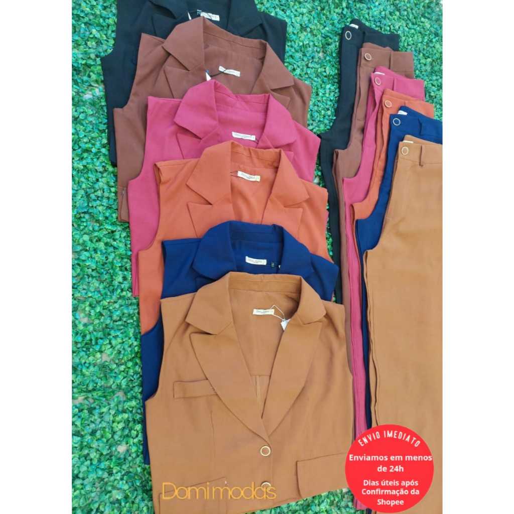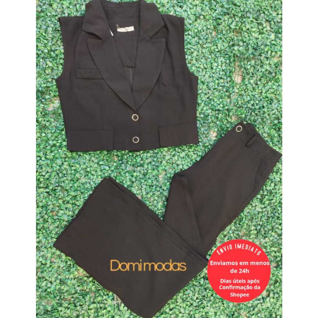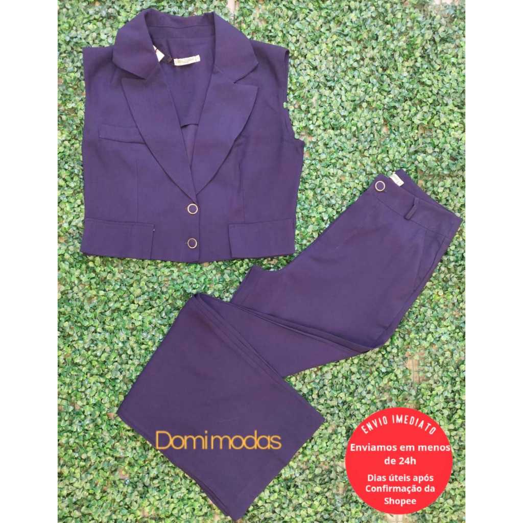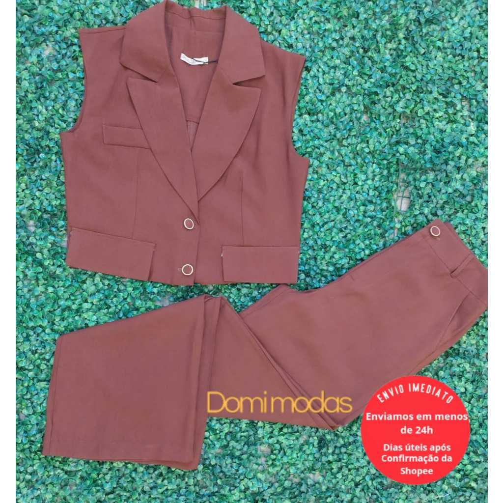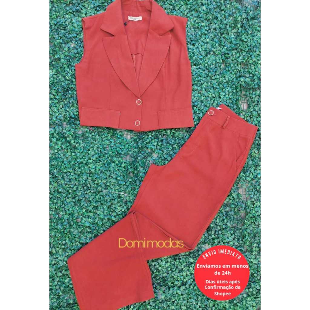 Domi Modas Conjunto Feminino Amarante Colete com Bolsos Fake Calça Cintura Alta 86800