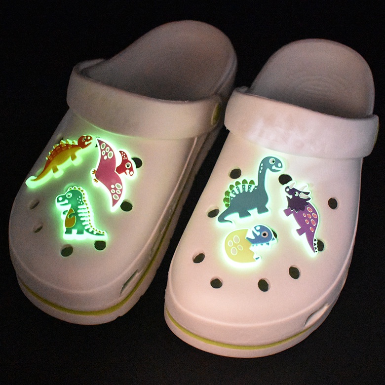 Encantos De Sapato Para Pinos De Decoração De Tamanco Colorido Botão Noctilucente De Dinossauro