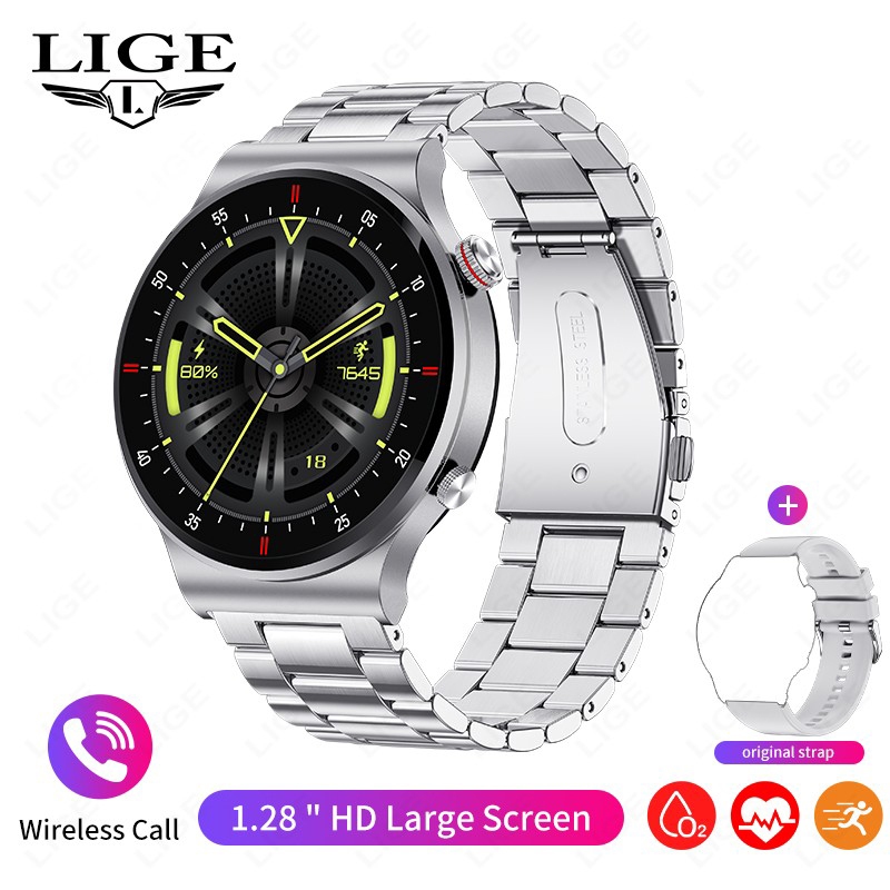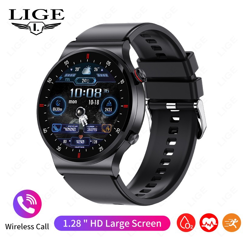 LIGE Relógio Inteligente Novos Homens De Negócios Smartwatch BT Chamada De Carregamento Sem Fio Relógios Esportes