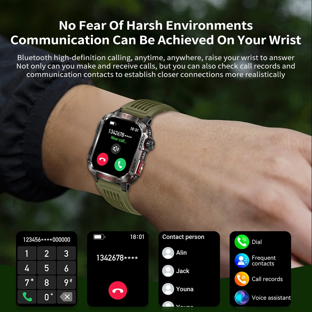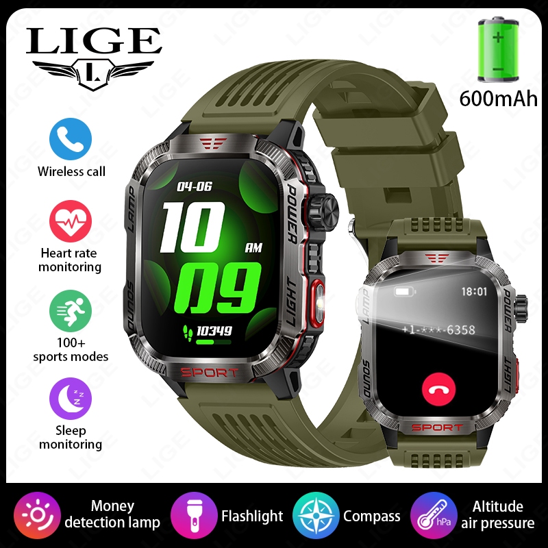 LIGE Esporte relógio inteligente original 2.01 polegada tela hd 600mah lanterna bússola freqüência cardíaca esportes fitness ip68 à prova dip68 água bt chamada smartwatch masculino para android e ios