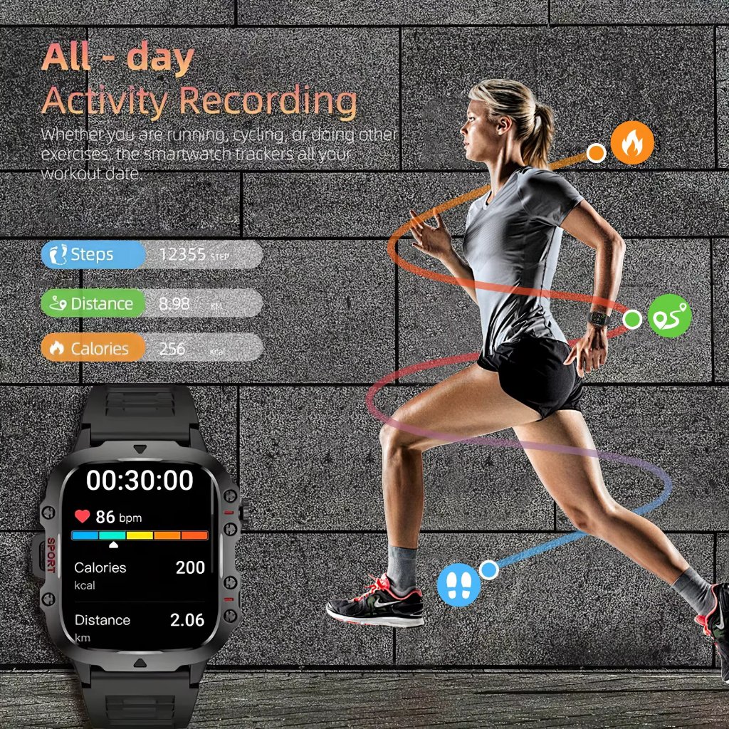 LIGE LED UV relógio inteligente masculino HD tela de 1,96 "com lanterna 100+ esportes à prova d'água