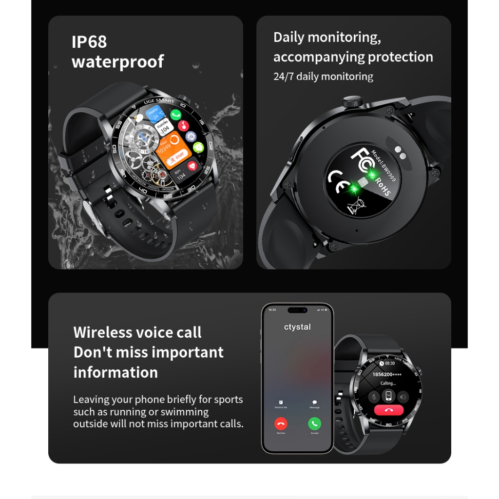 LIGE IP68 À Prova Dip68 Água Relógio Inteligente Ao Ar Livre 123 + Esportes Detecção De Oxigênio No Sangue Tela 1.38 Pol