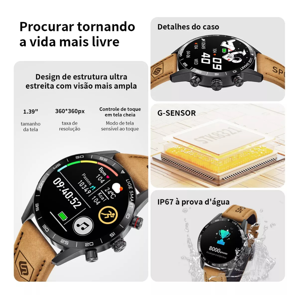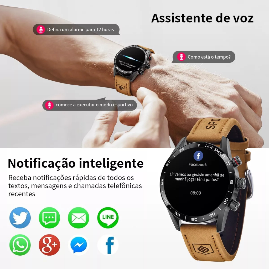 LIGE Novo Relógio Inteligente Masculino 1.39 À Prova Dwaterproof Água Display Bluetooth Chamada De Voz Ao Ar Livre 100 +