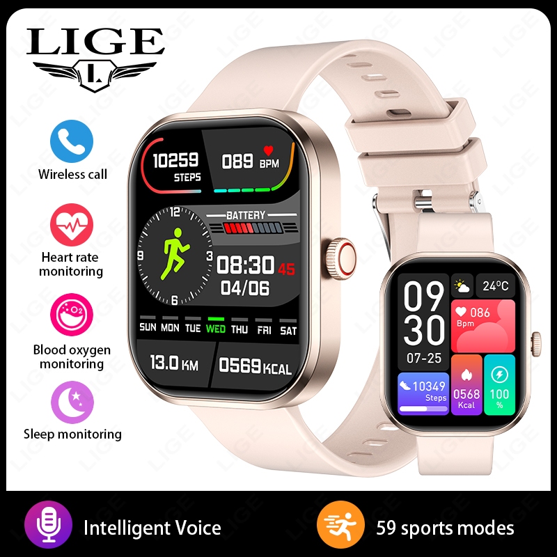 LIGE Fashion HD Relógios Inteligentes Mulheres Assistente De Voz Chamada Bluetooth Monitor De Saúde Frequência Cardíaca