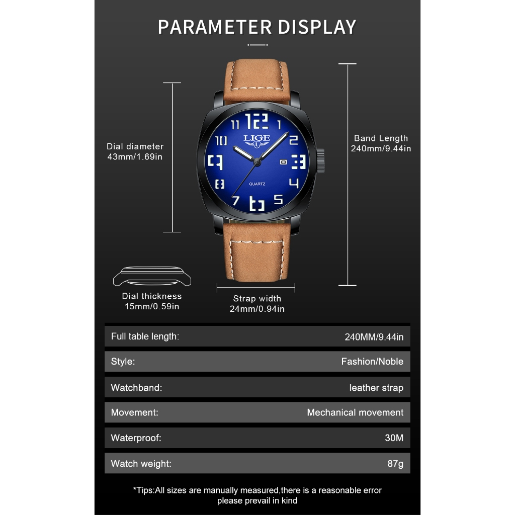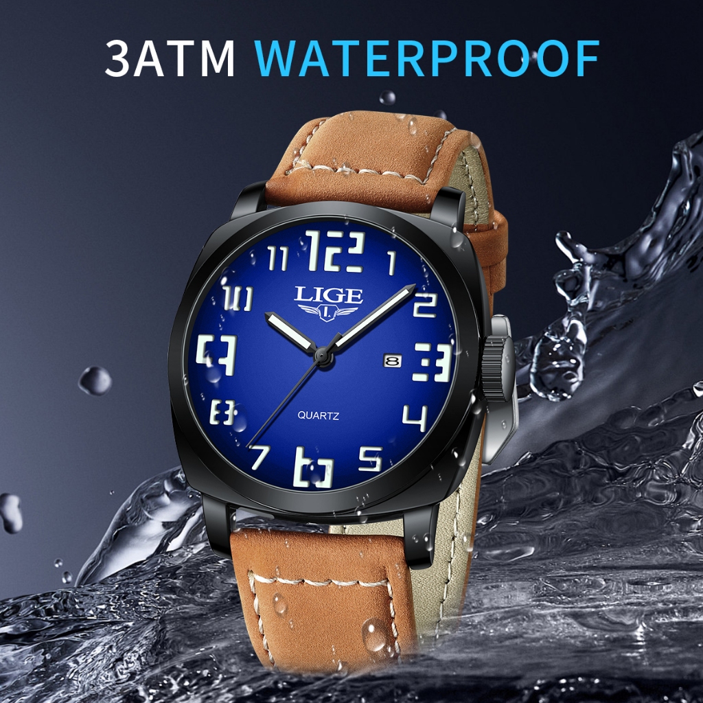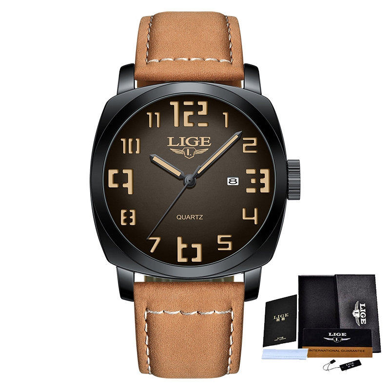 LIGE Moda Relógio Original Masculino Couro À Prova D'água Luminoso Esportes Quartzo Cronógrafo Relógios