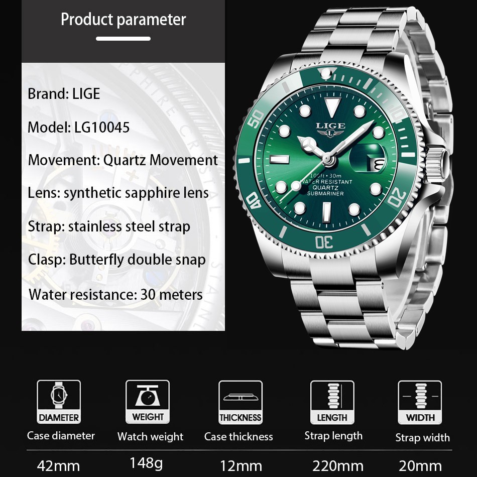 LIGE Men's Watches 30M Waterproof Date Clock Male Sports Watches Men Quartz Wrist Watch