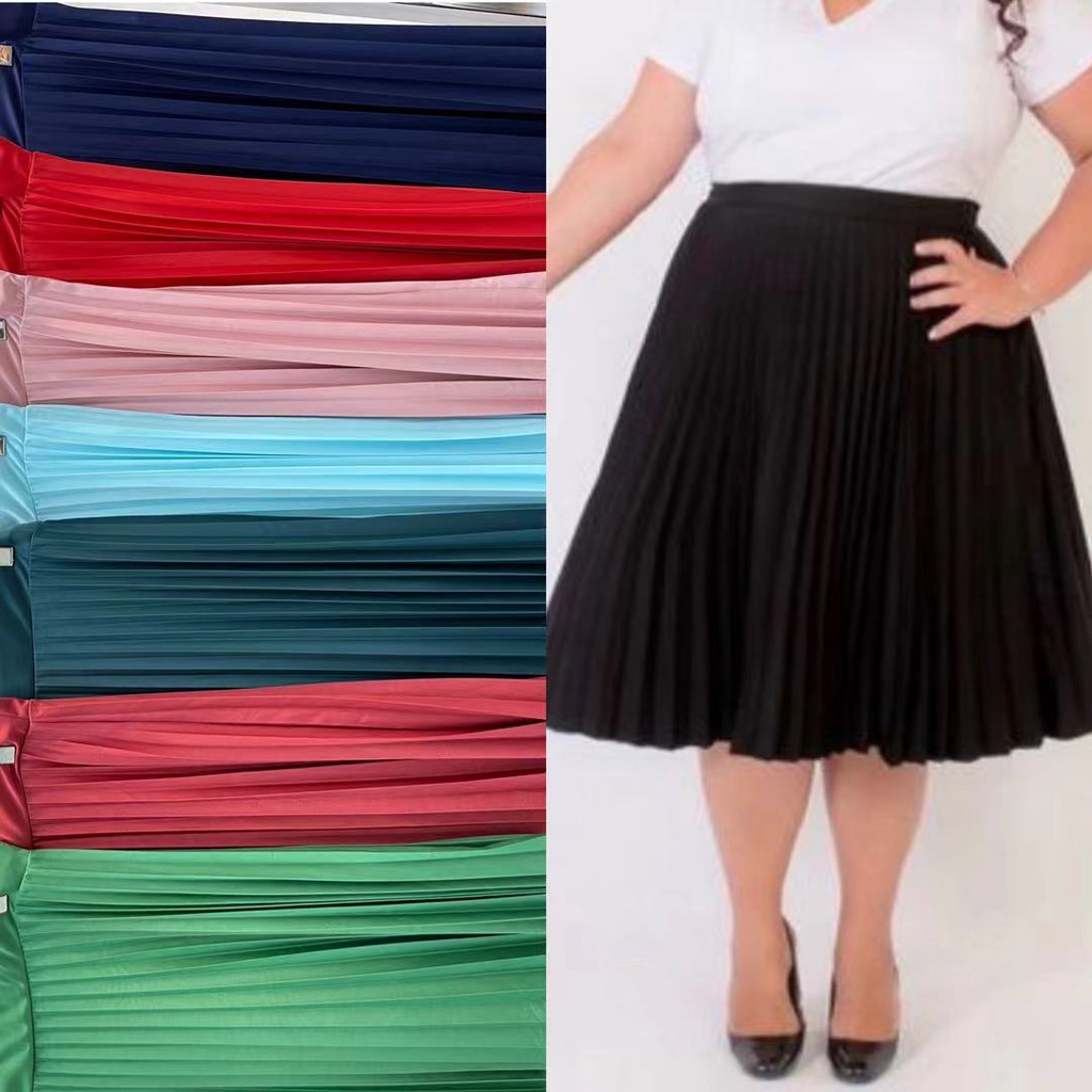 Saia midi PLISSADA PLUS SIZE MODA FEMININA 119