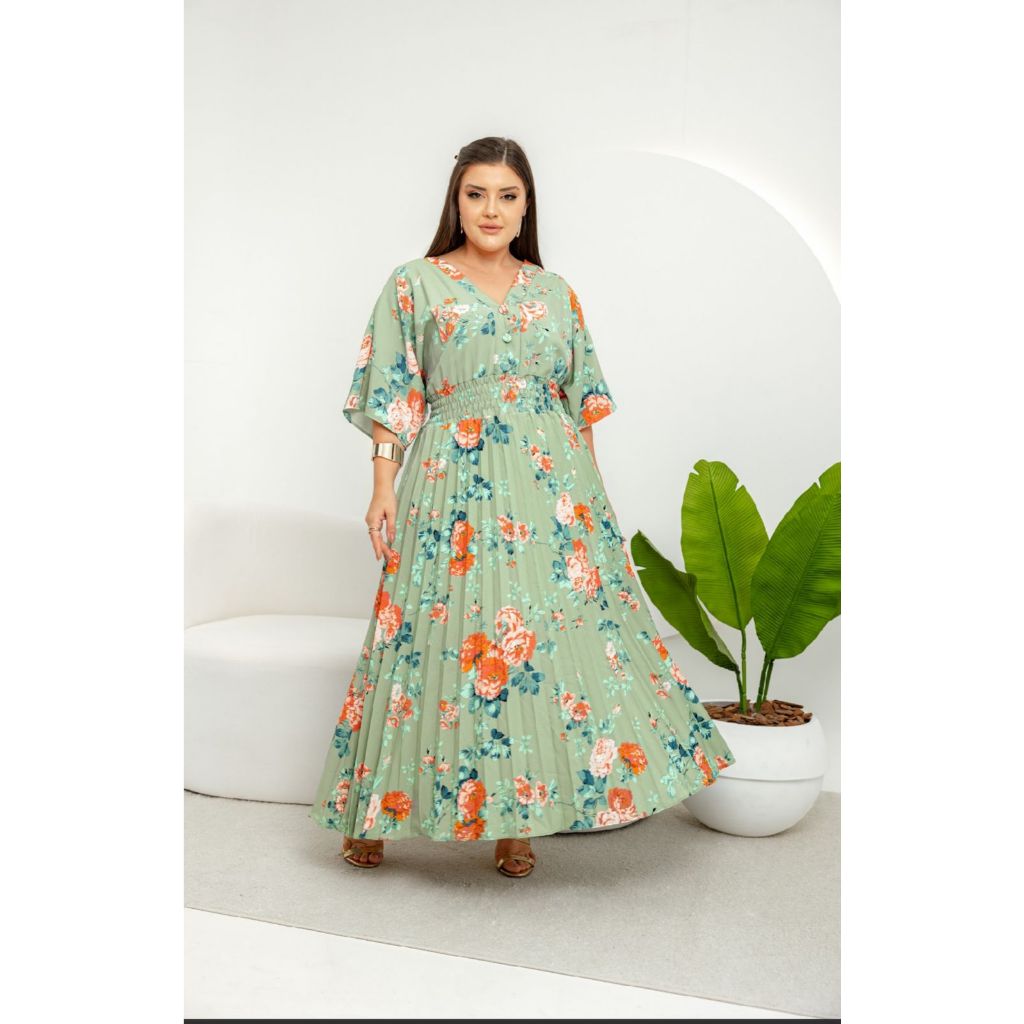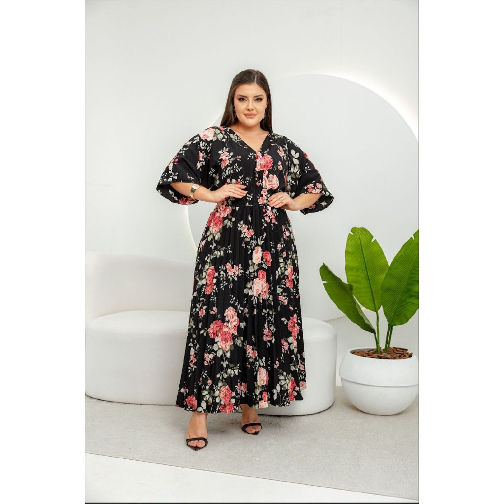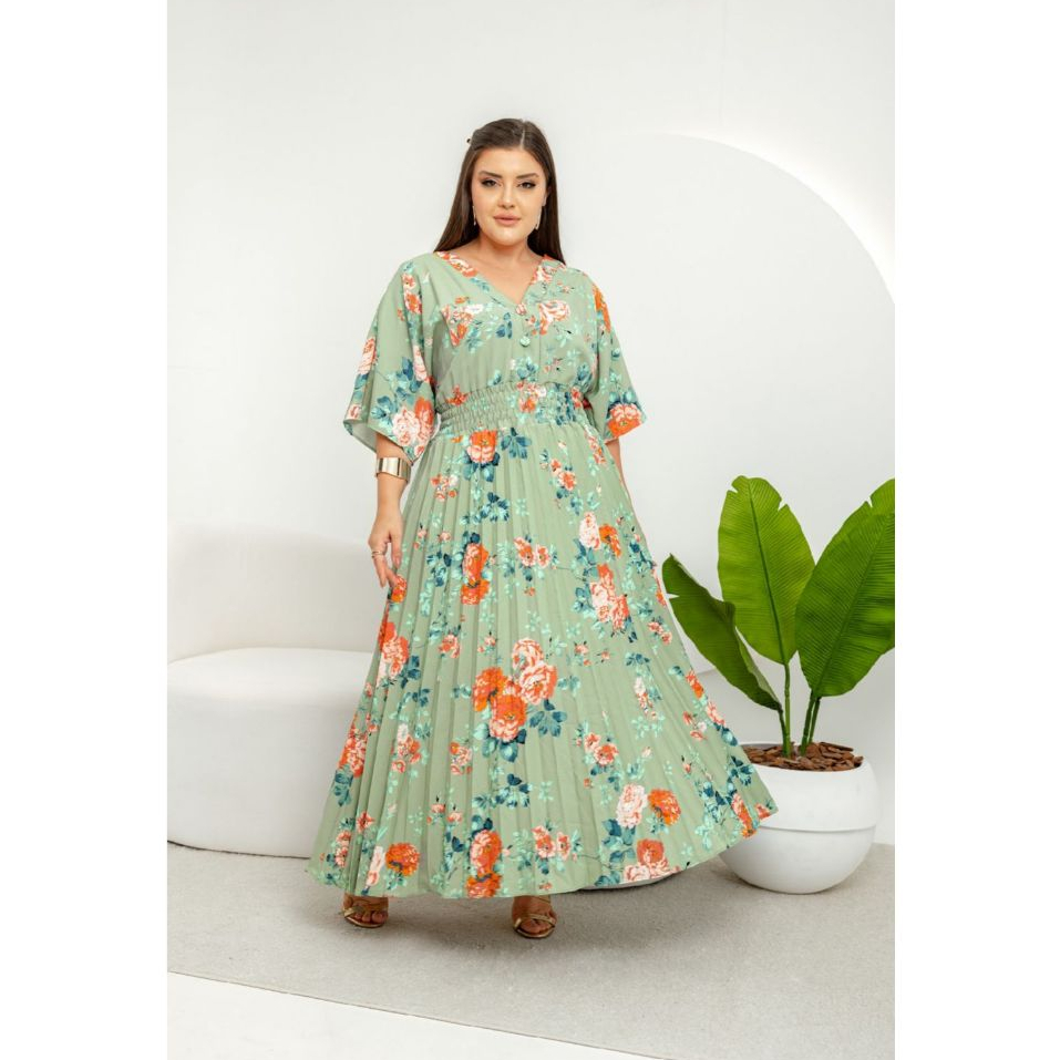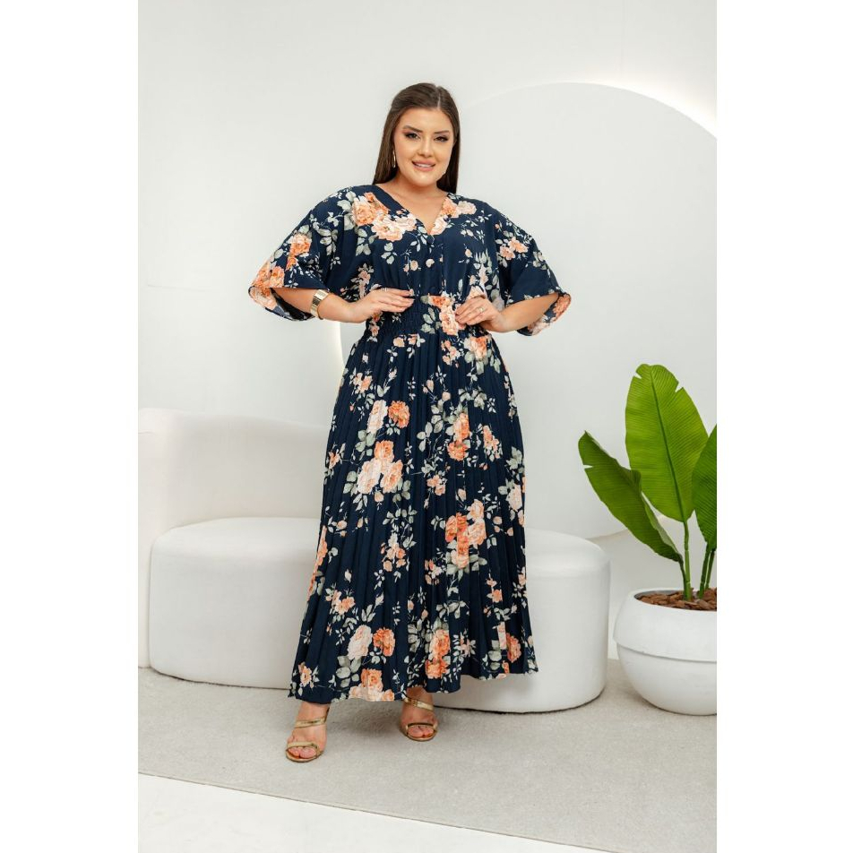 Vestido Longuete Plissado Floral Com Elático na Cintura Moda Evangélica 172