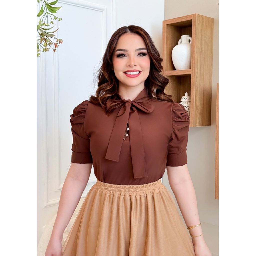 Blusa Social Manga Curta Bufante com laçinho N-8