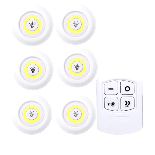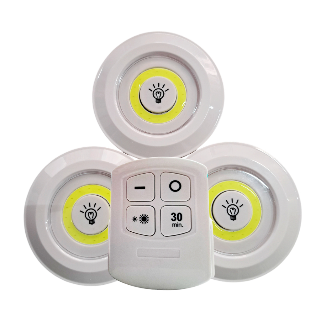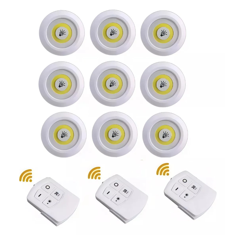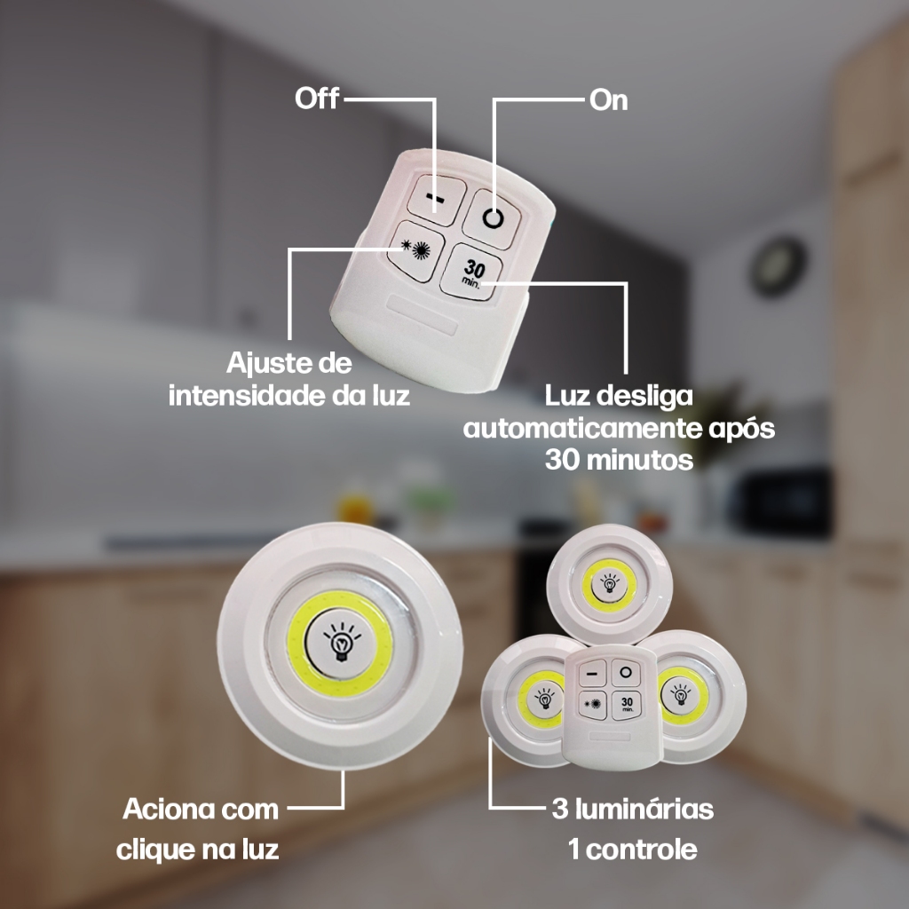 Kit Luminária Cob 3, 6 ou 9 Lâmpadas Led Sem Fio Controle Cor Branco Quente ou Frio Armários Móveis