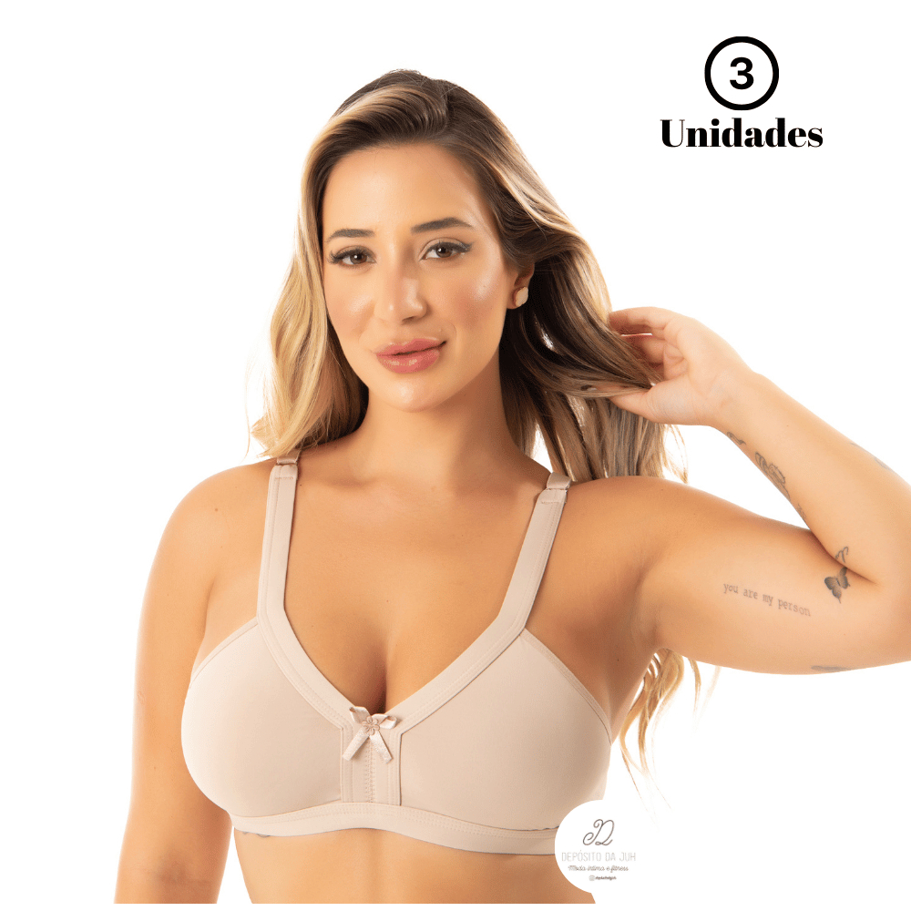 Kit 3 Sutiã Básico Sem Bojo Reforçado Sem Aro Tradicional Microfibra M G GG Feminino