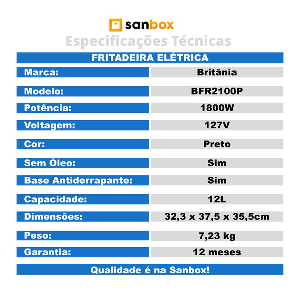 Fritadeira Air Fryer 4 Em 1 Oven Sem Óleo 127V Britânia BFR2100P 1800W