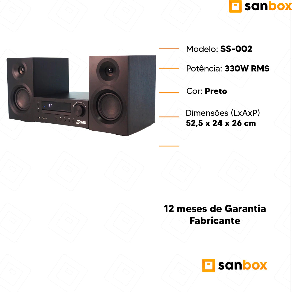 Mini System SS-002 SSOUND 330W CD/MP3 Bluetooth Rádio - Bivolt