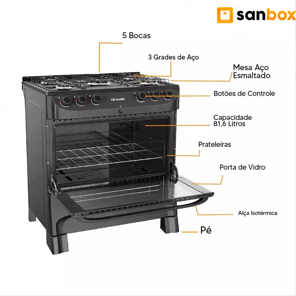 Fogão 5 Bocas Mueller Mfi5bc Preto Fosco Mesa Esmaltado - Bivolt