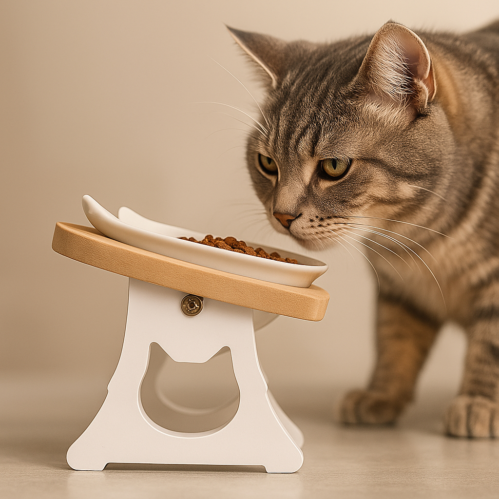 COMEDOURO ELEVADO PARA GATOS COM TIGELA DE PORCELANA ERGONÔMICO