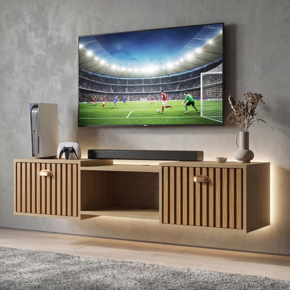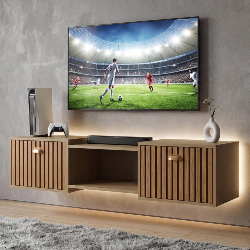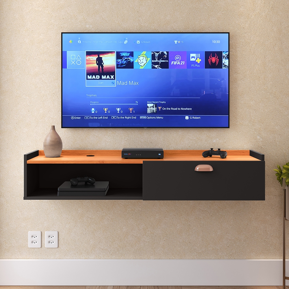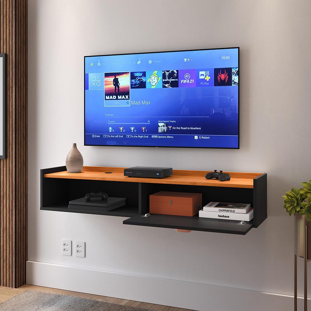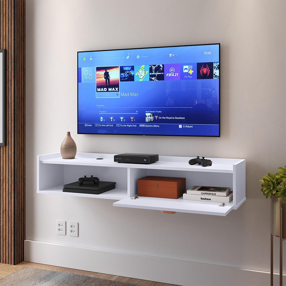 Rack Suspenso Home Tv 32 42 50" 1 Porta Puxador Concha Decoração Sala Estar Quarto Pequeno Lojas RPM