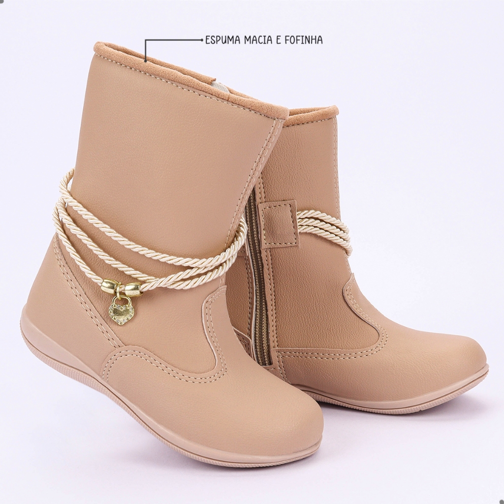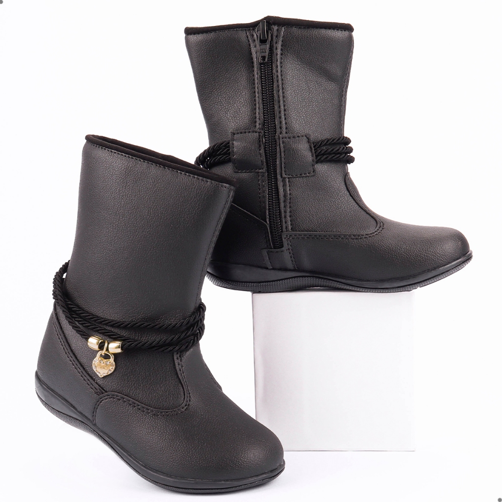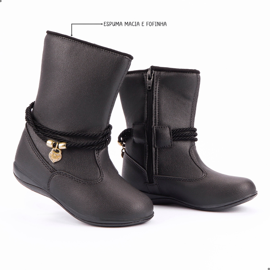 Bota Infantil Feminina Menina Botinha Infantil Preta/Nude Inverno Bota Menina Bota Infantil 20 ao 34