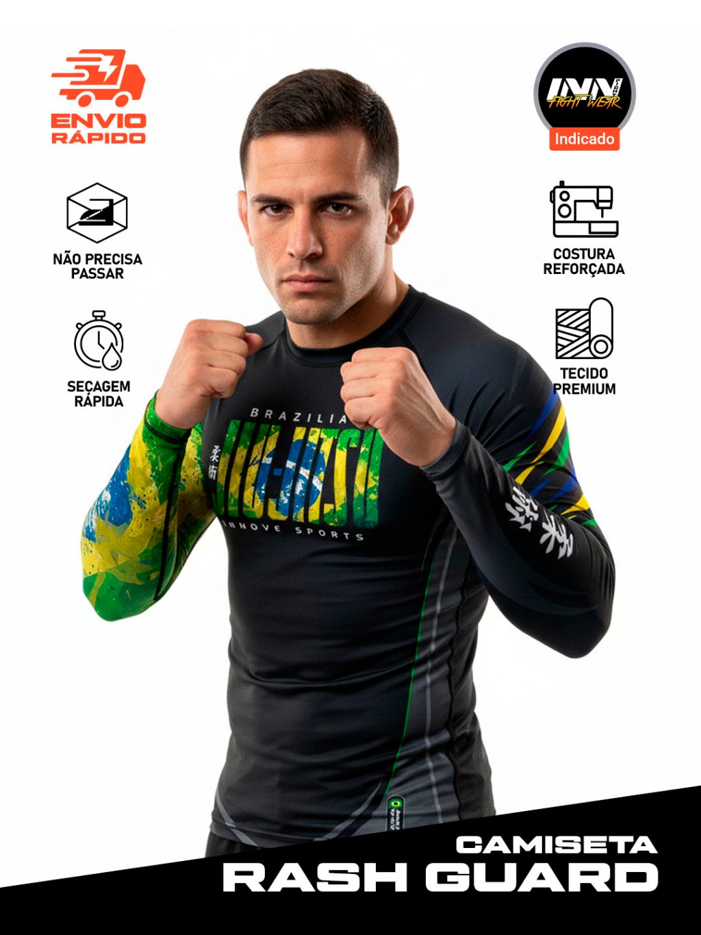Camiseta Compressão Rash Guard Brazilian Jiu Jitsu Bjj Inn Fight