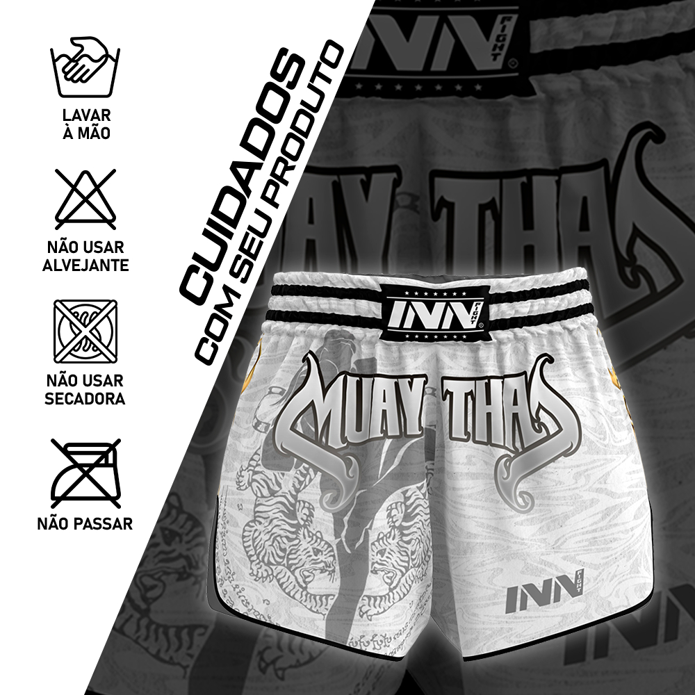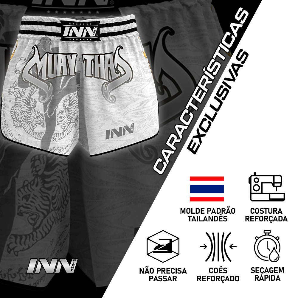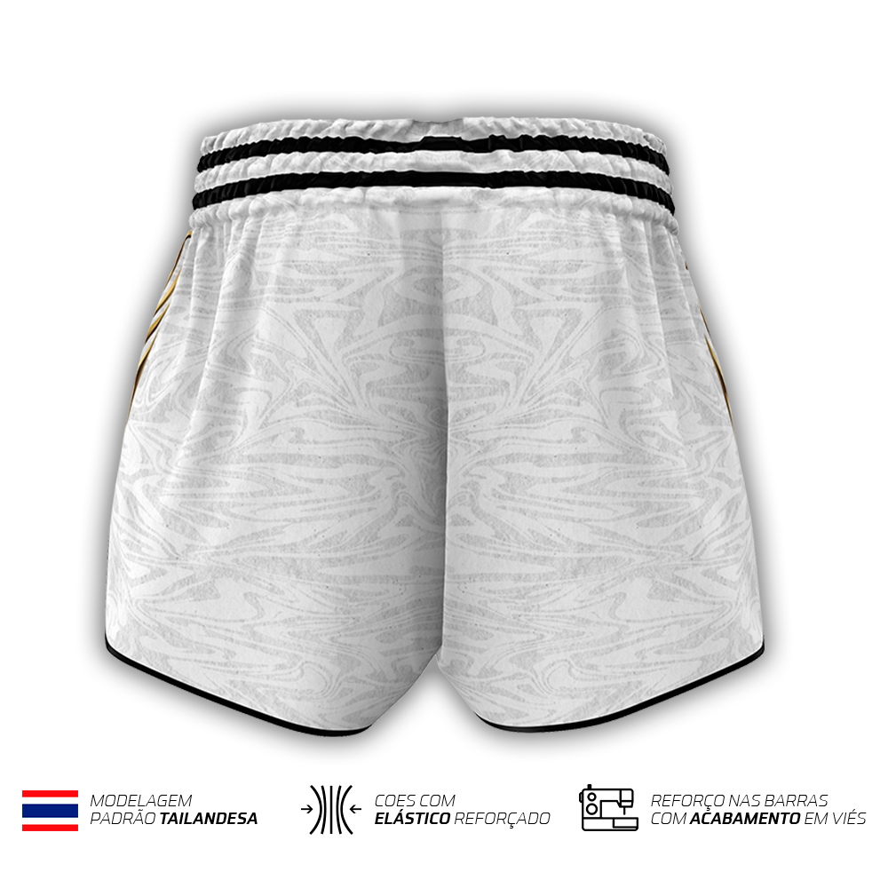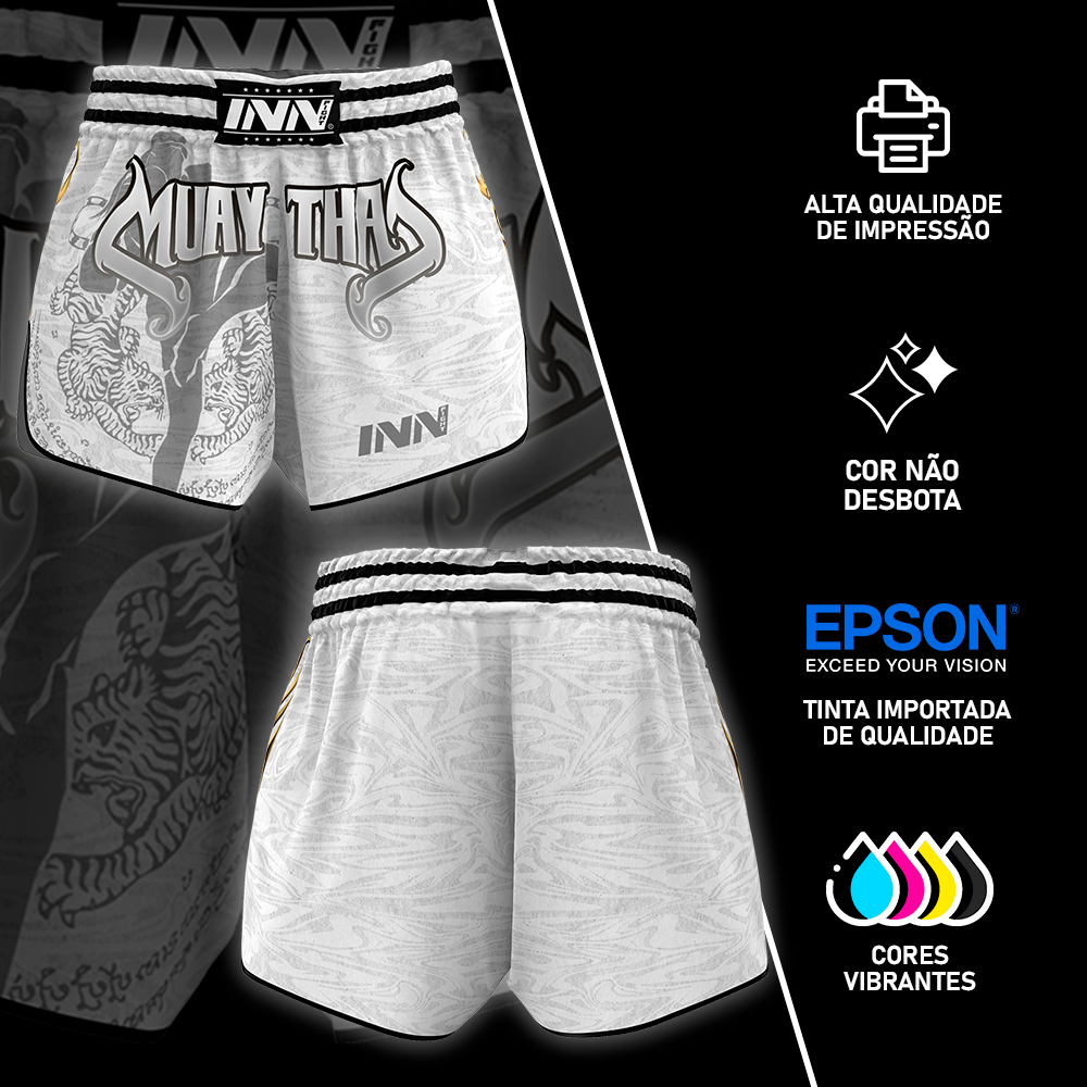 Short Muay Thai White Fighter Inn Fight Tailandês Unissex