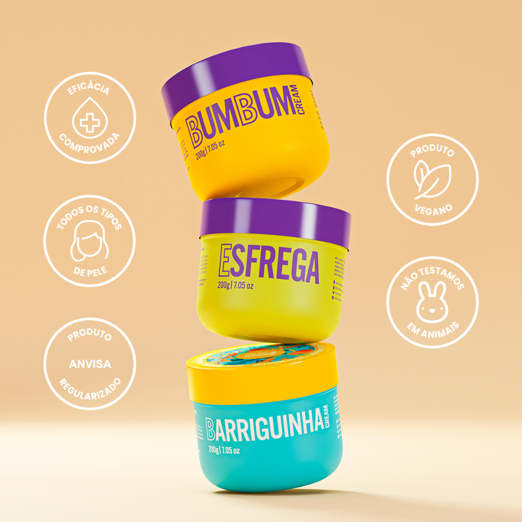 Bumbum Cream e Esfoliante Corporal Esfrega 200g Tratamento Anti Celulite Antiestrias Renovação Pele