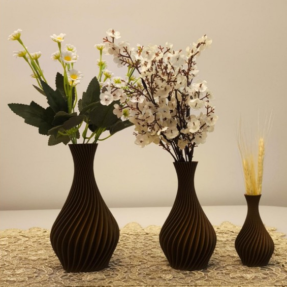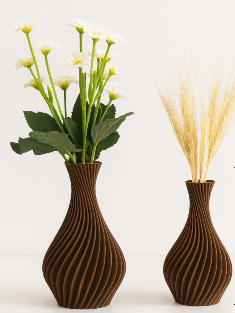 Kit Vasos Decorativos Luxo Marrom em Espiral Elegante / Moderno - Jarro Decoração