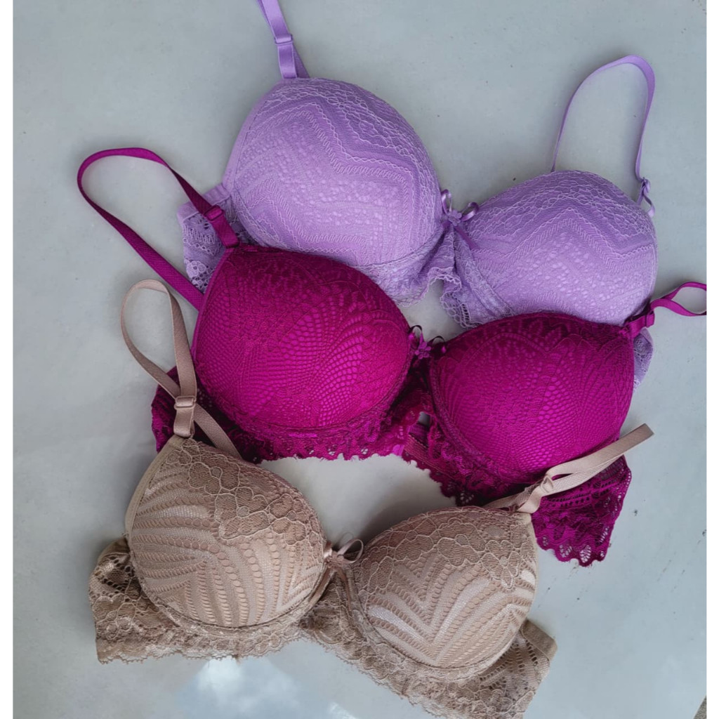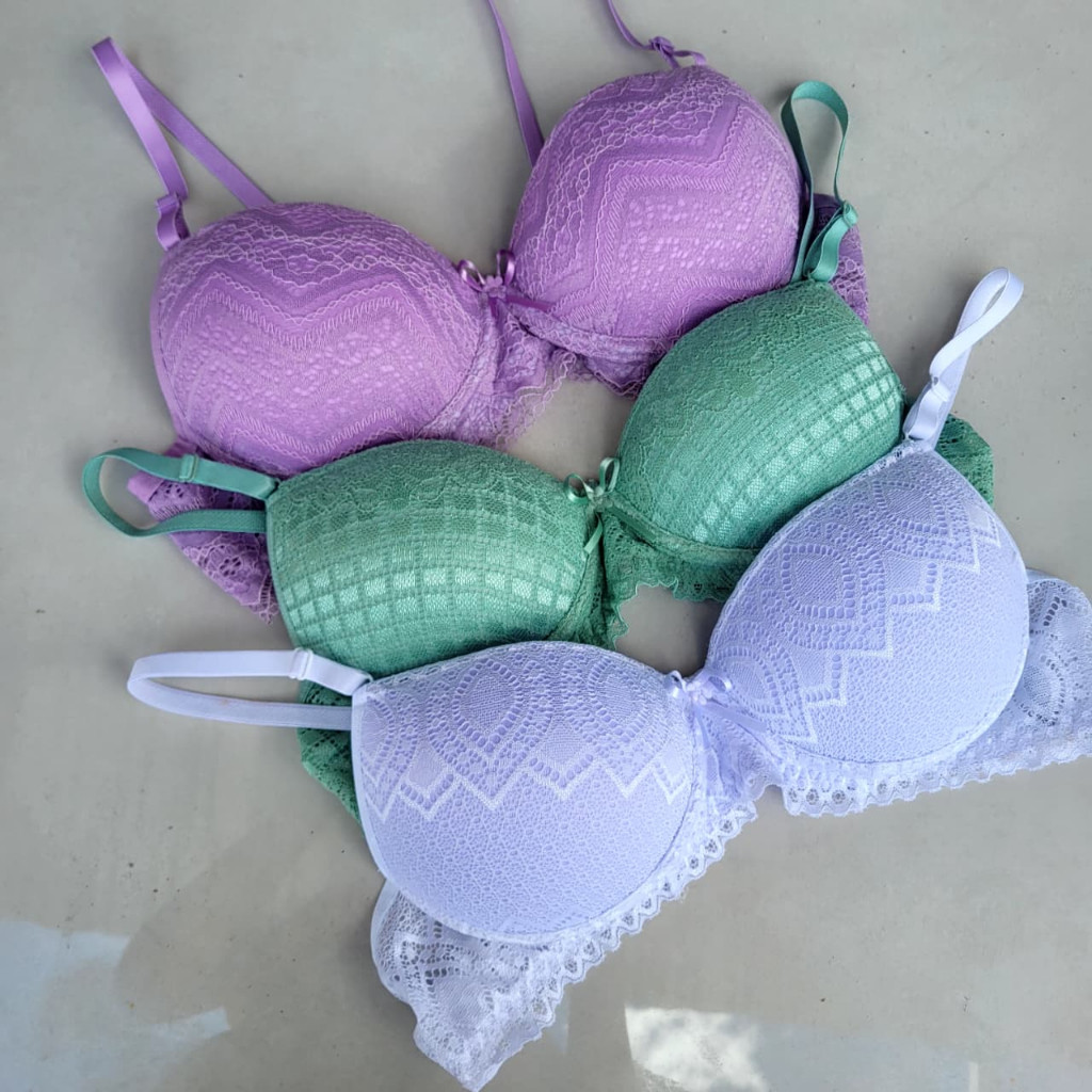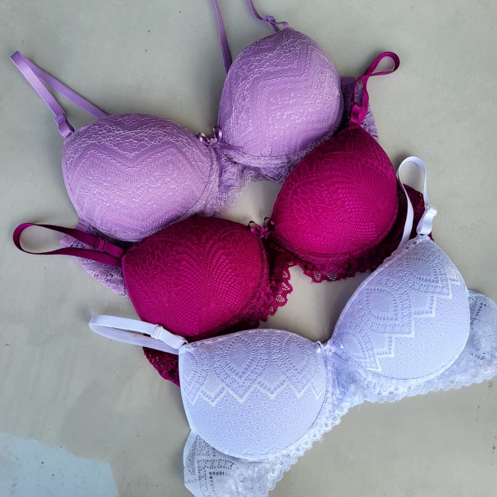 Kit 3 Sutiãs Renda com Bojo Com aro Confortável Lingerie Feminina Premium