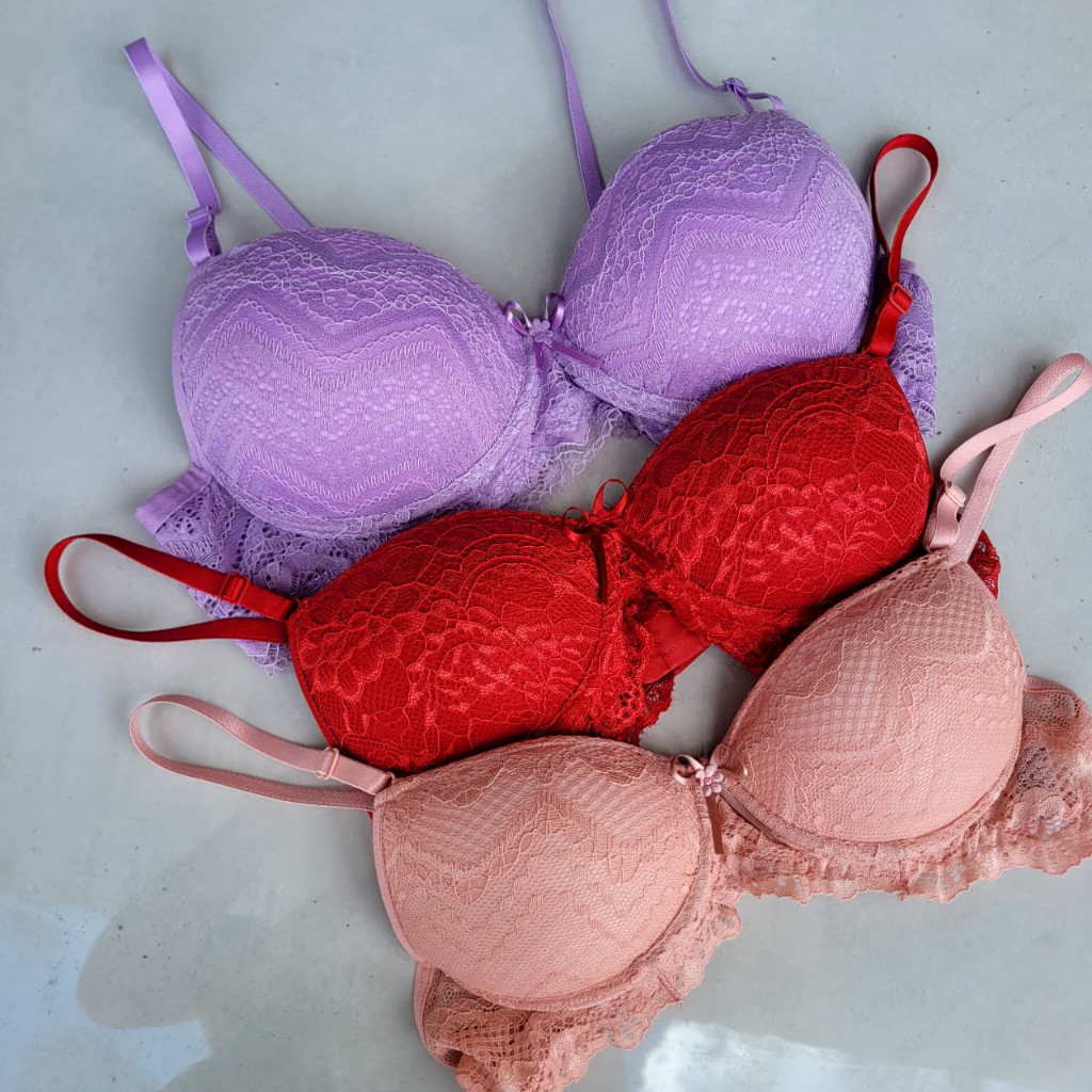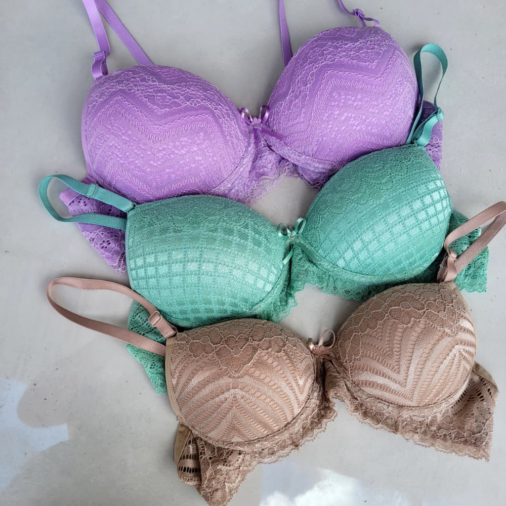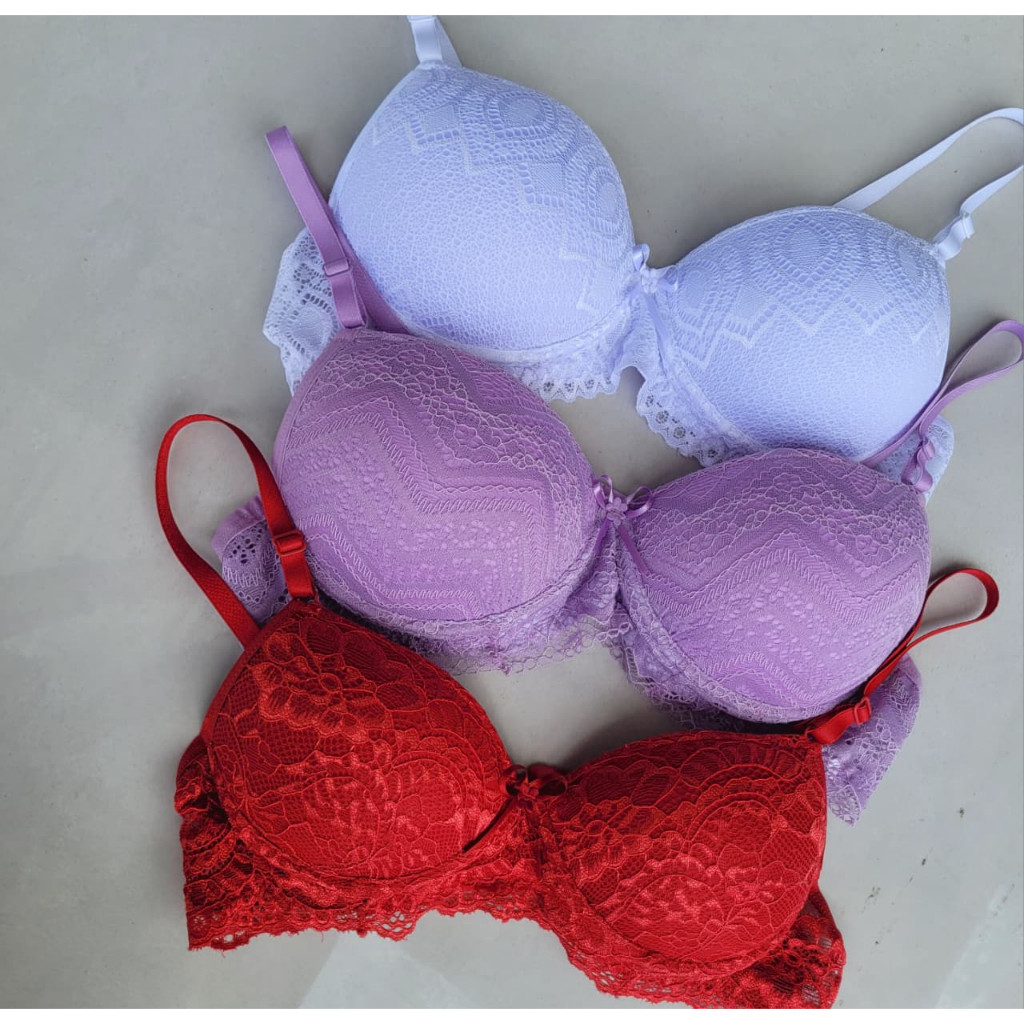 Kit 3 Sutiãs Renda com Bojo Com aro Confortável Lingerie Feminina Premium