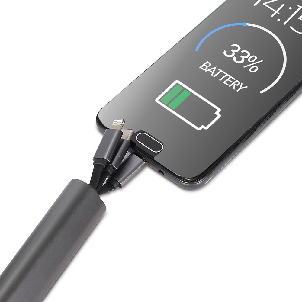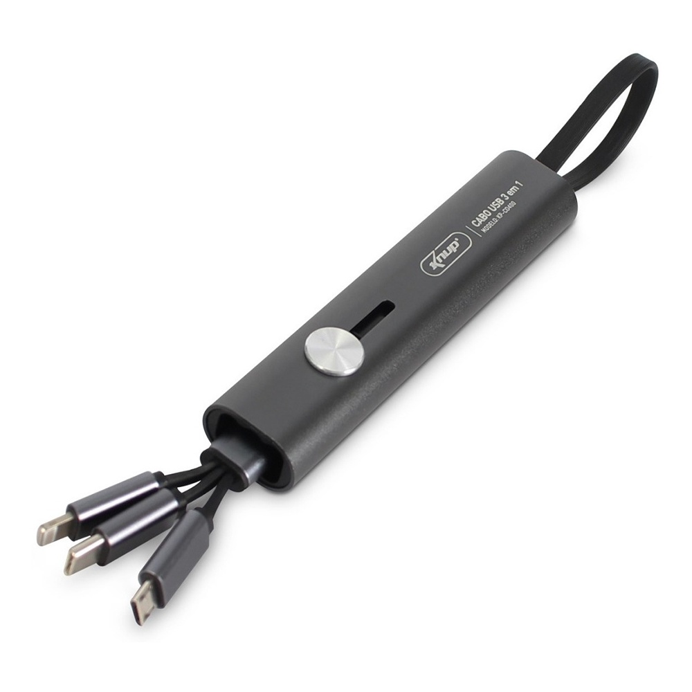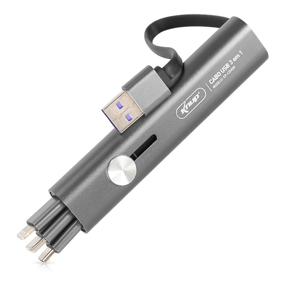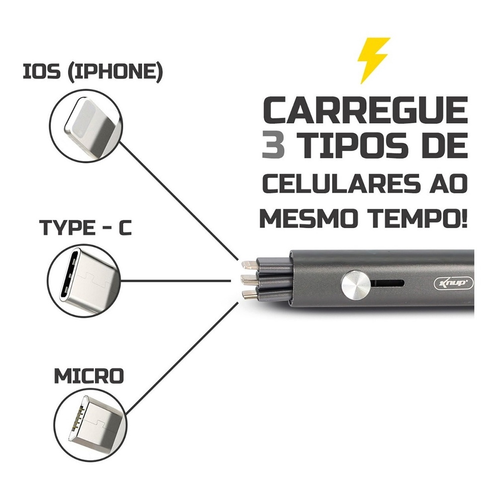 Carregador Usb C Lightning V8 Portátil Metal 3 em 1
