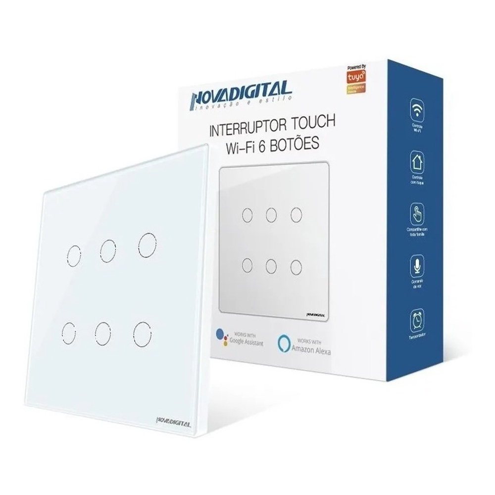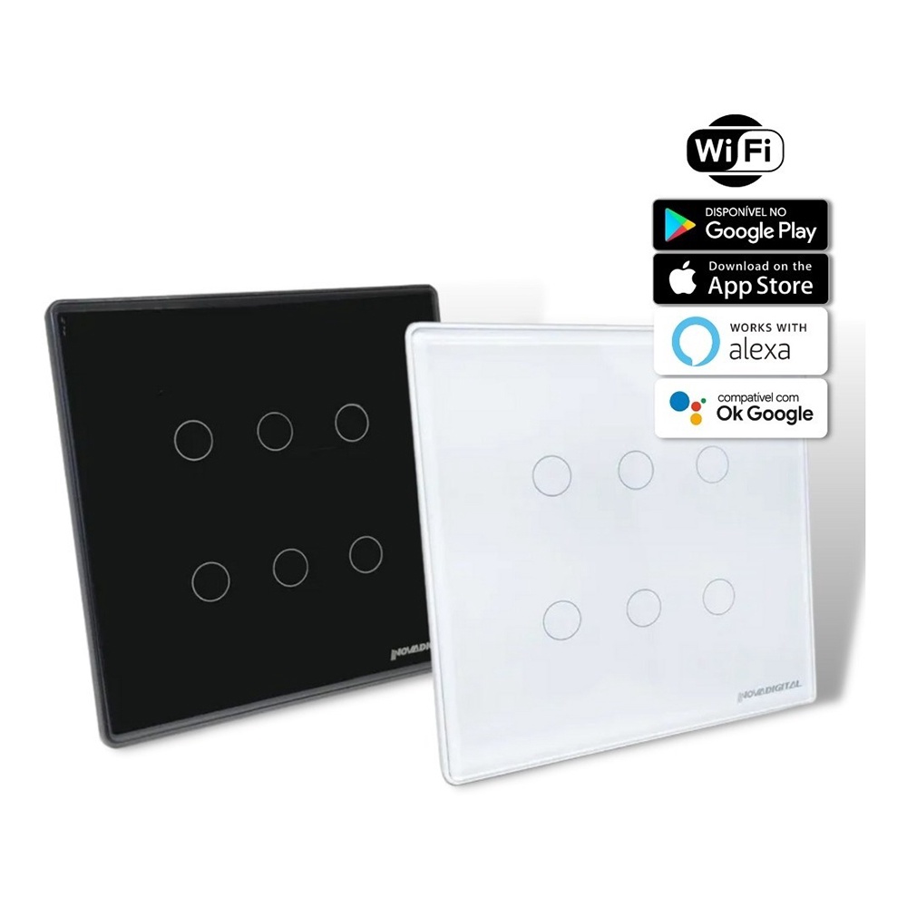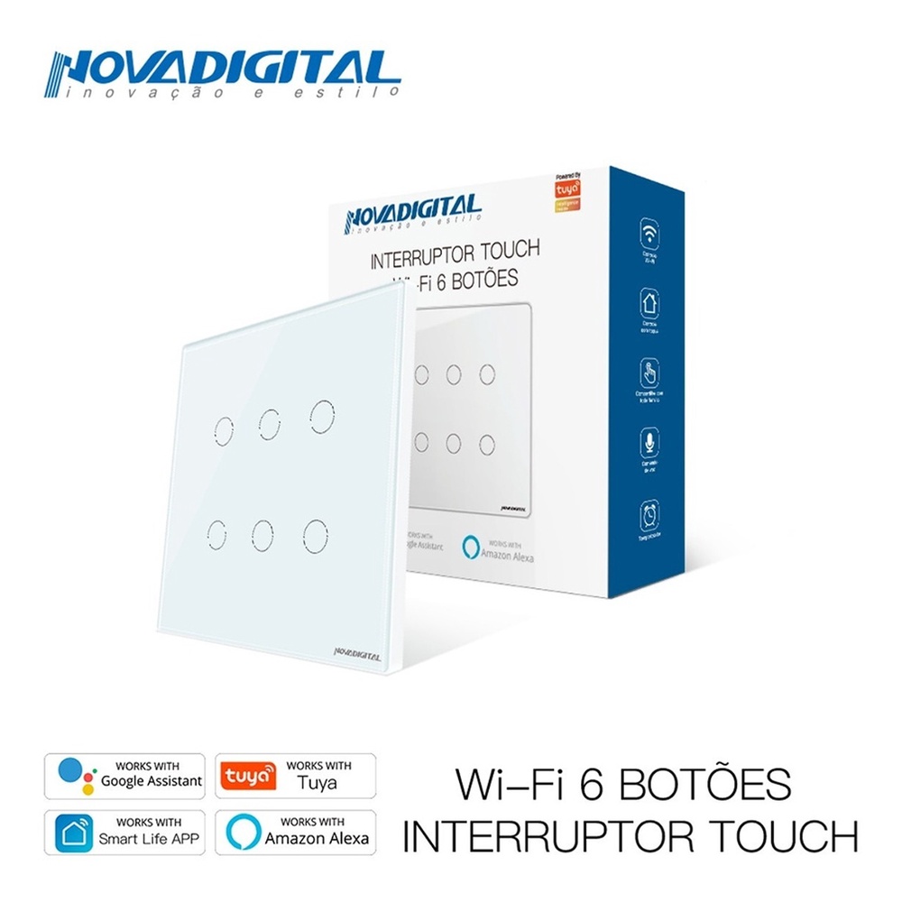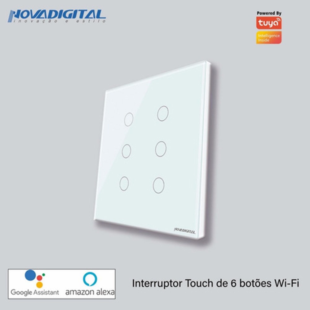 Interruptor Inteligente Wifi RF 6 e 4 Botões Branco Touch App Smart Life Alexa Google Home