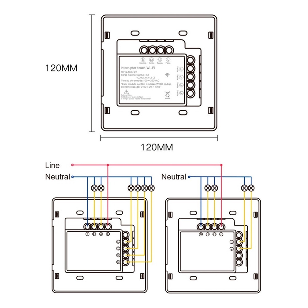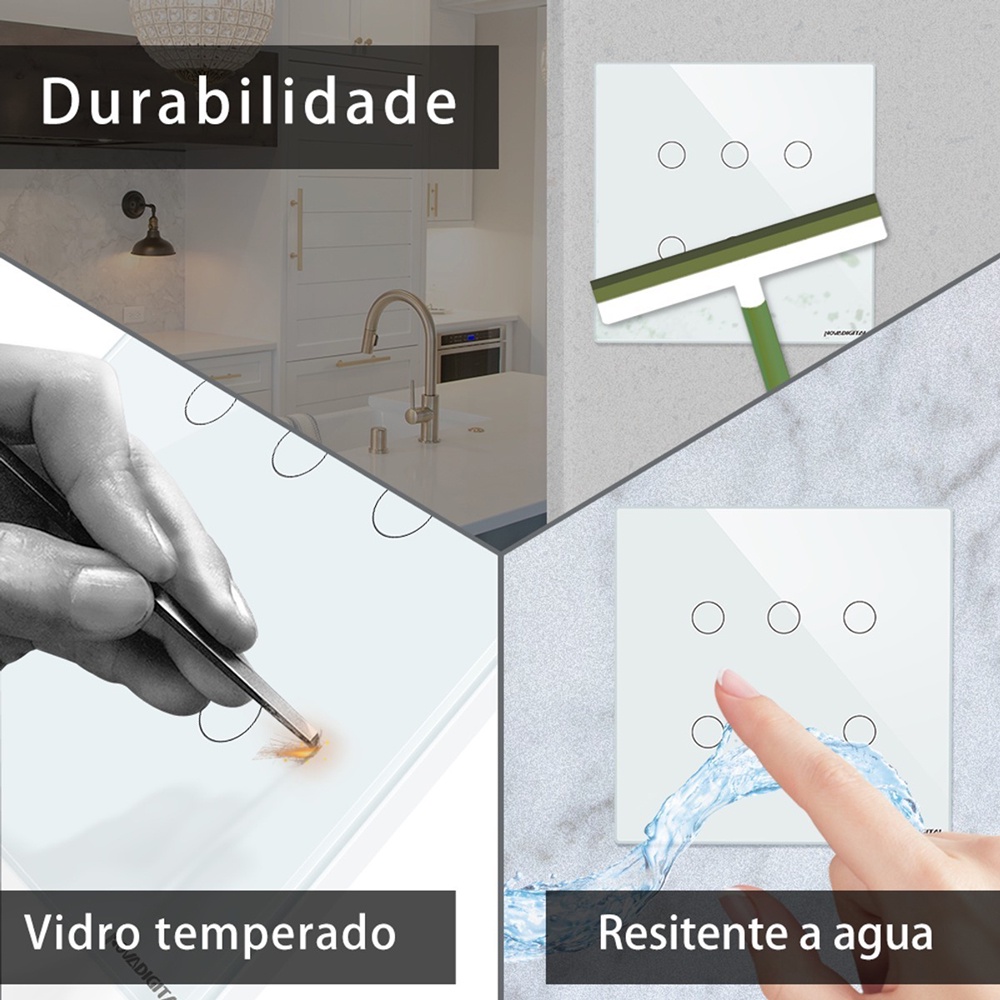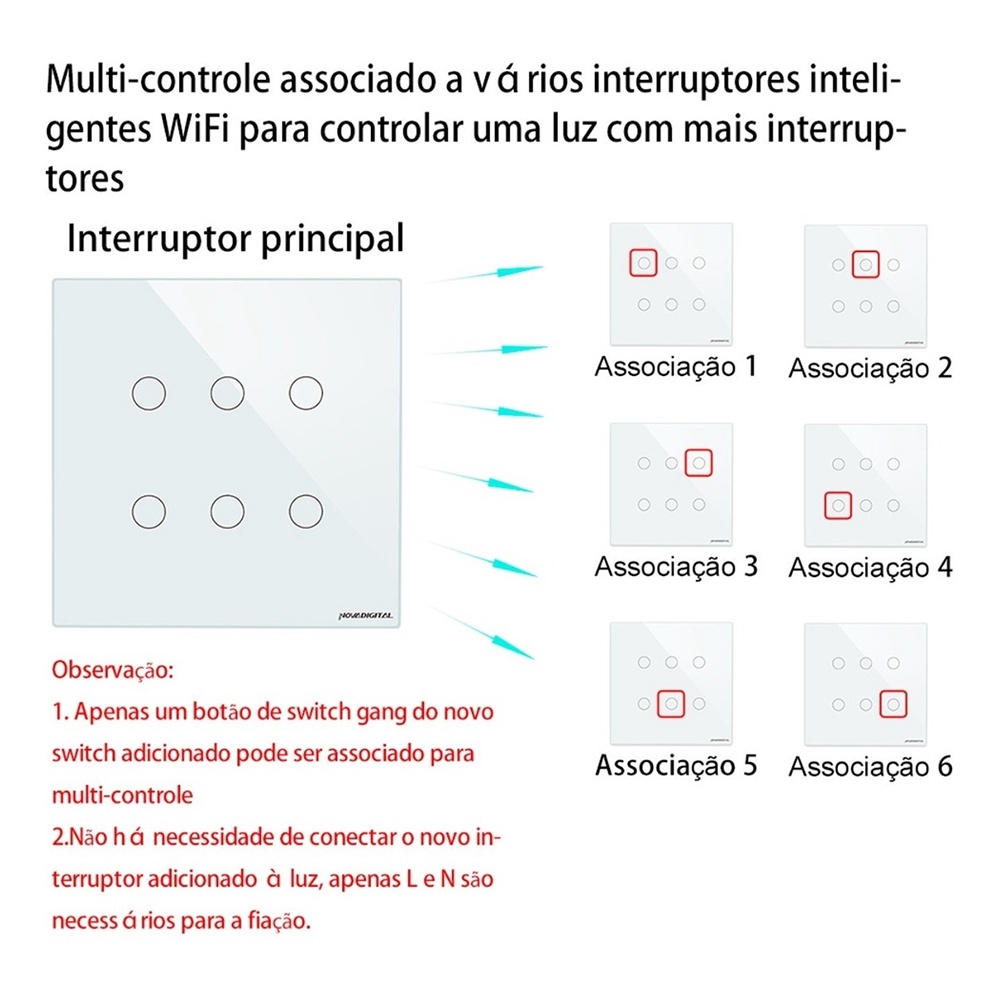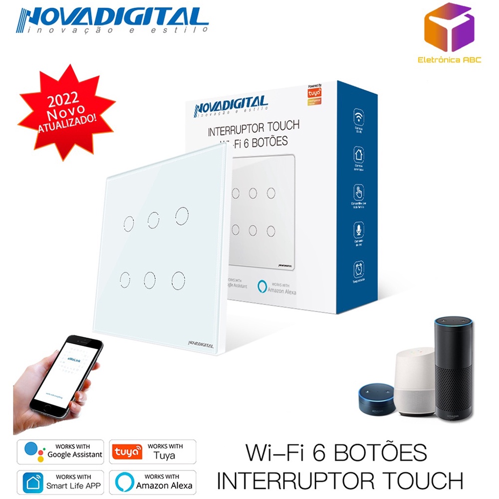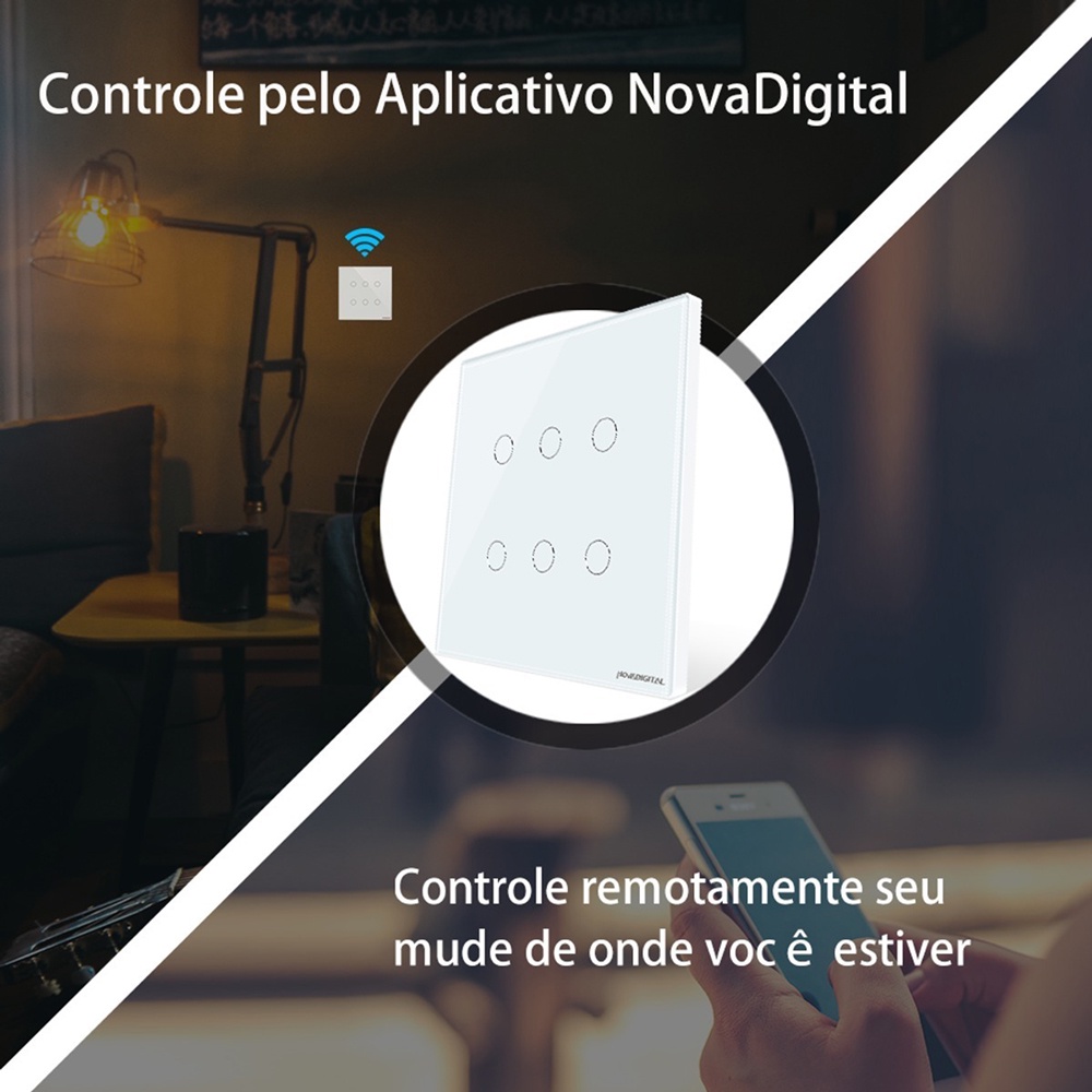 Interruptor Inteligente Wifi RF 6 e 4 Botões Branco Touch App Smart Life Alexa Google Home