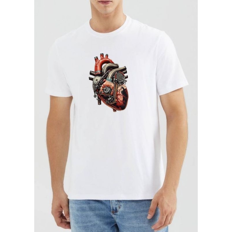 Camiseta Algodão Coração Motor Premium Conforto Masculina