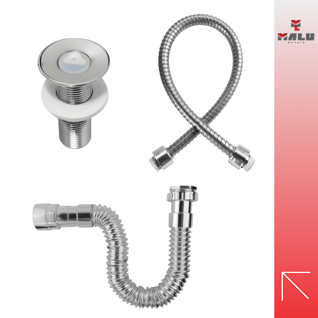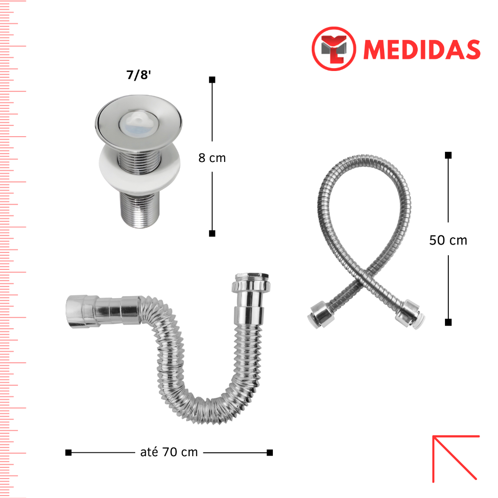 Kit Válvula Lavatório 7/8 ABS CR + Sifão Universal Cromado + Engate 50 CM Inox Trançado