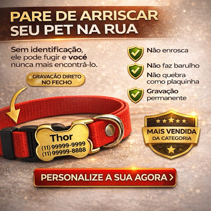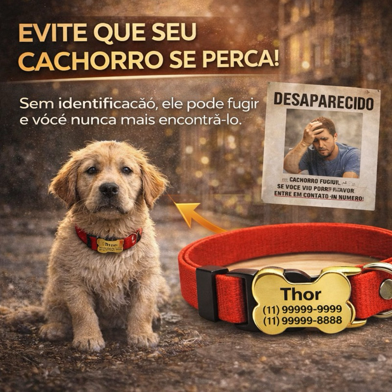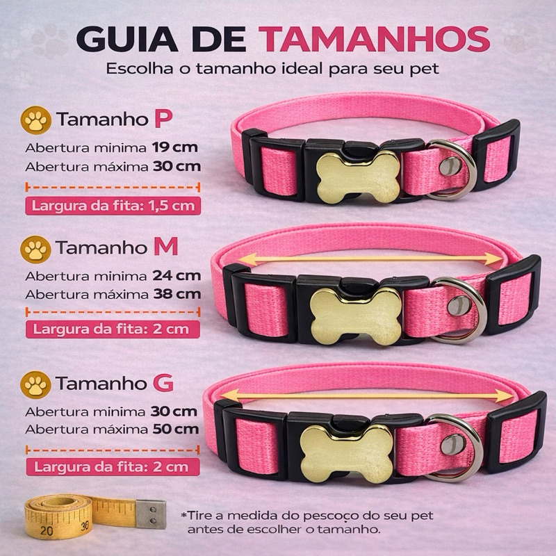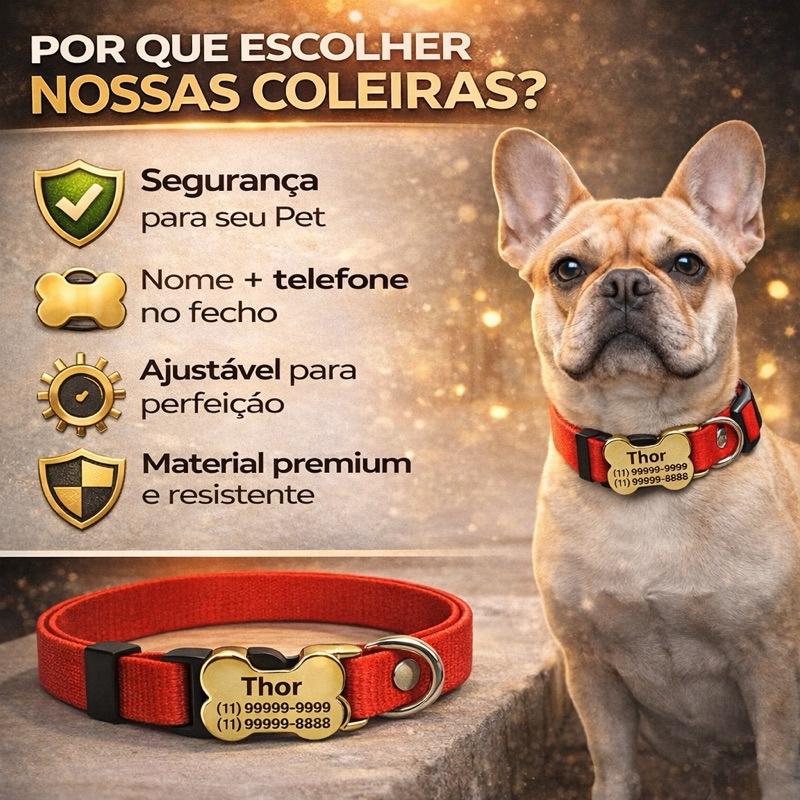 Coleira Para Cachorro Personalizada no Fecho - Não Incomoda - P/M/G Identificação Nome e Telefone