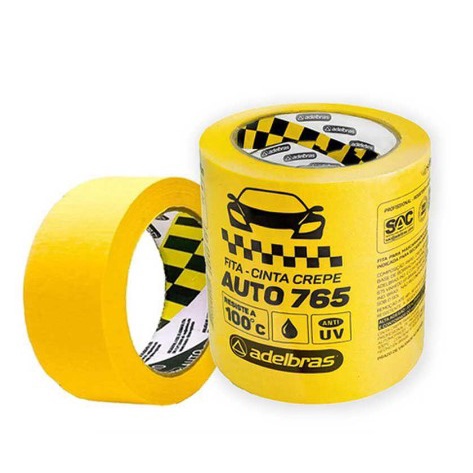 KIT 2 FITA CREPE AUTOMOTIVA AMARELA ANTI 765 UV 48MMX40M ADELBRAS - 2 UNIDADES