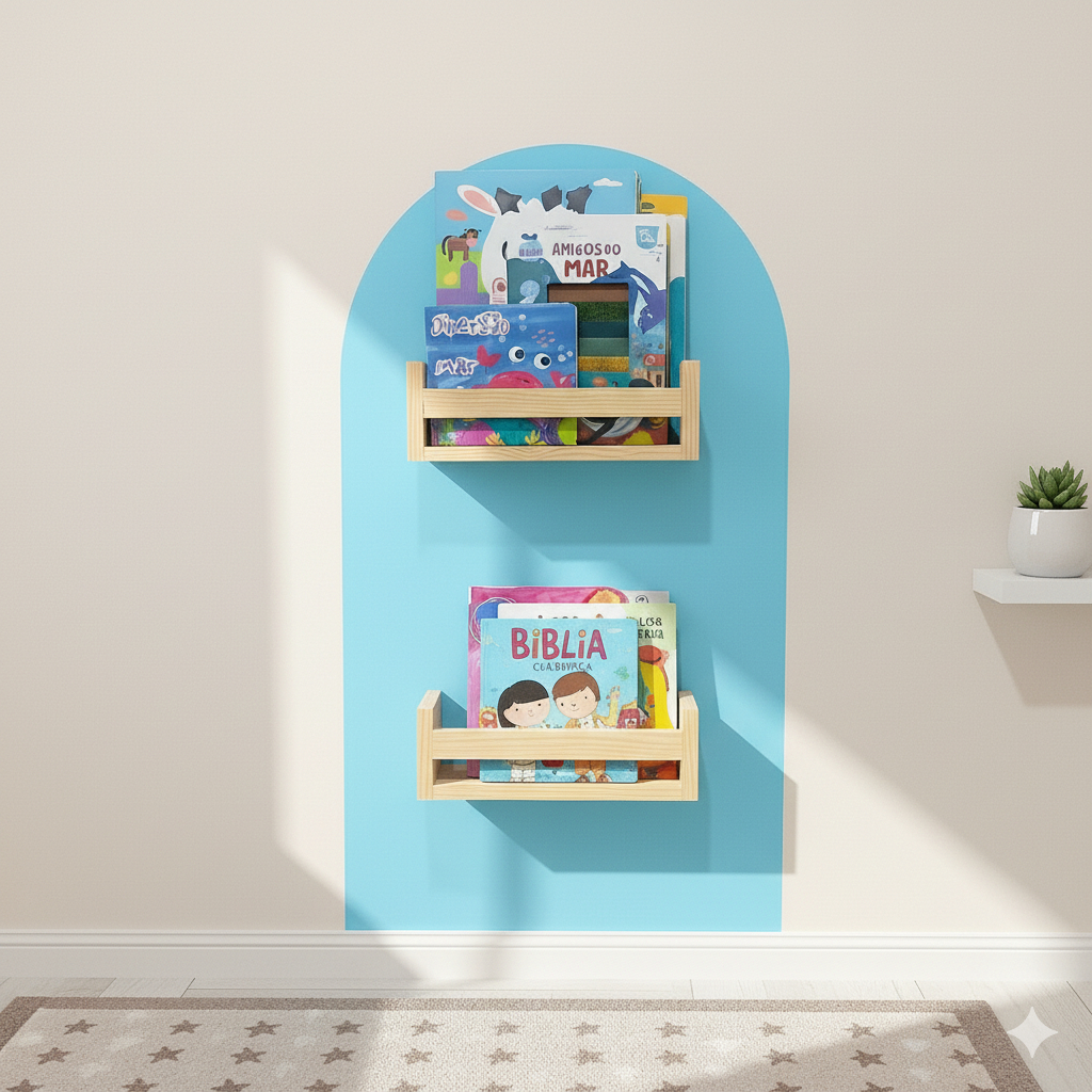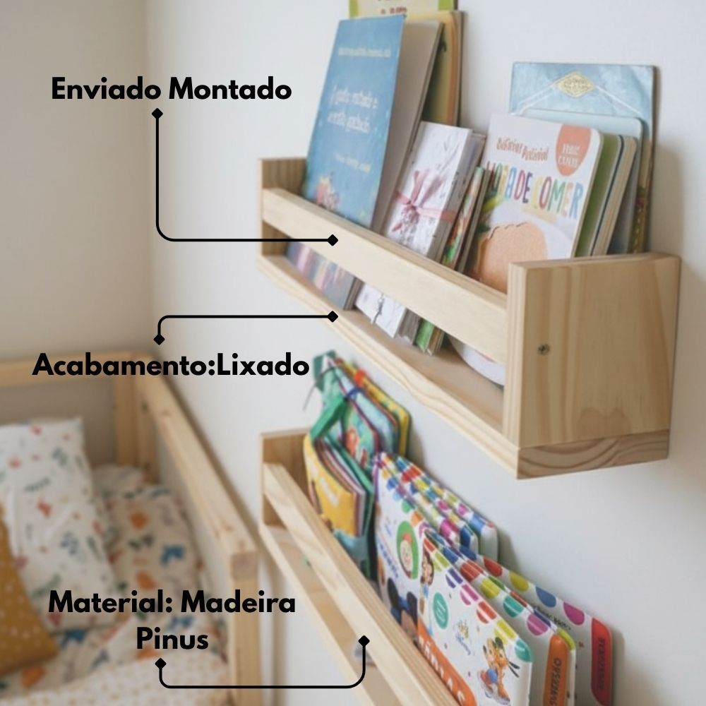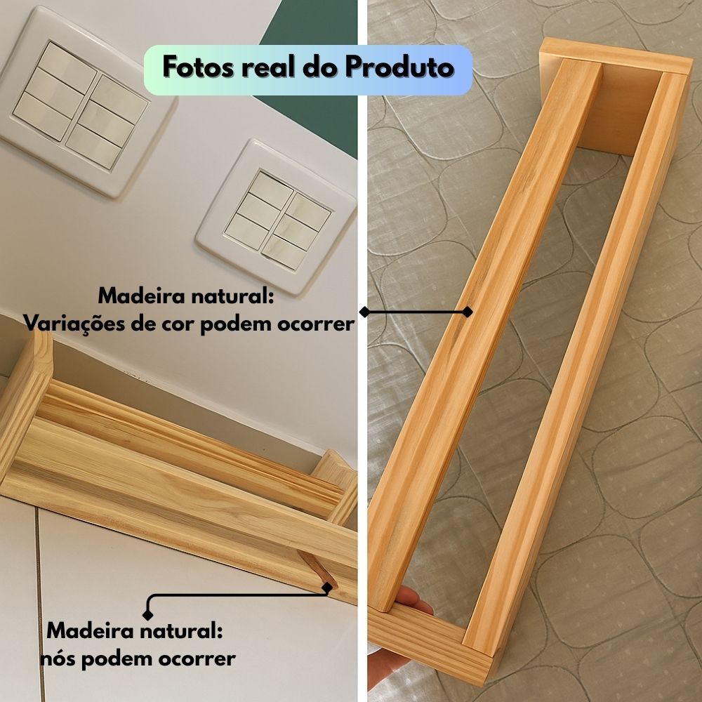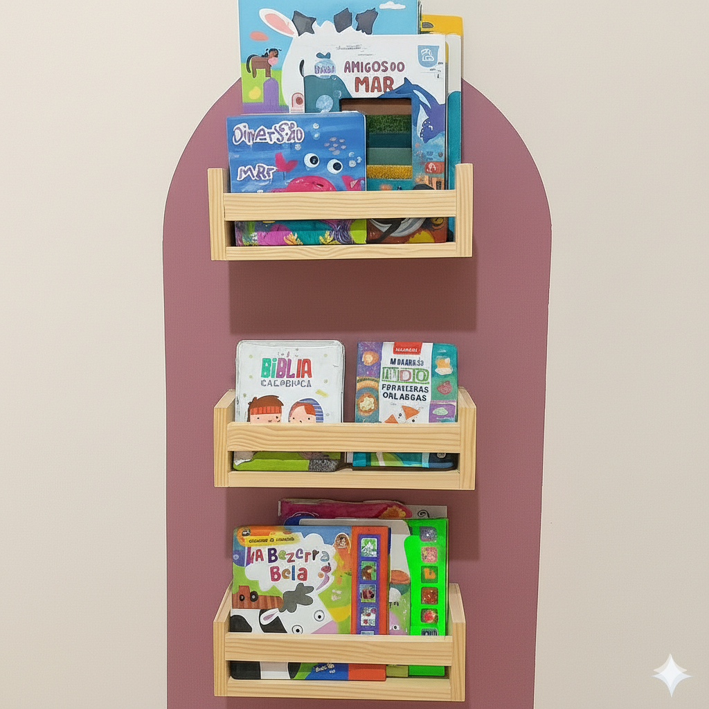 KIT 3 Prateleiras Infantil 100% Madeira Maciça 48 CM Decorar Quarto/ Sala/ Cozinha/Banheiro