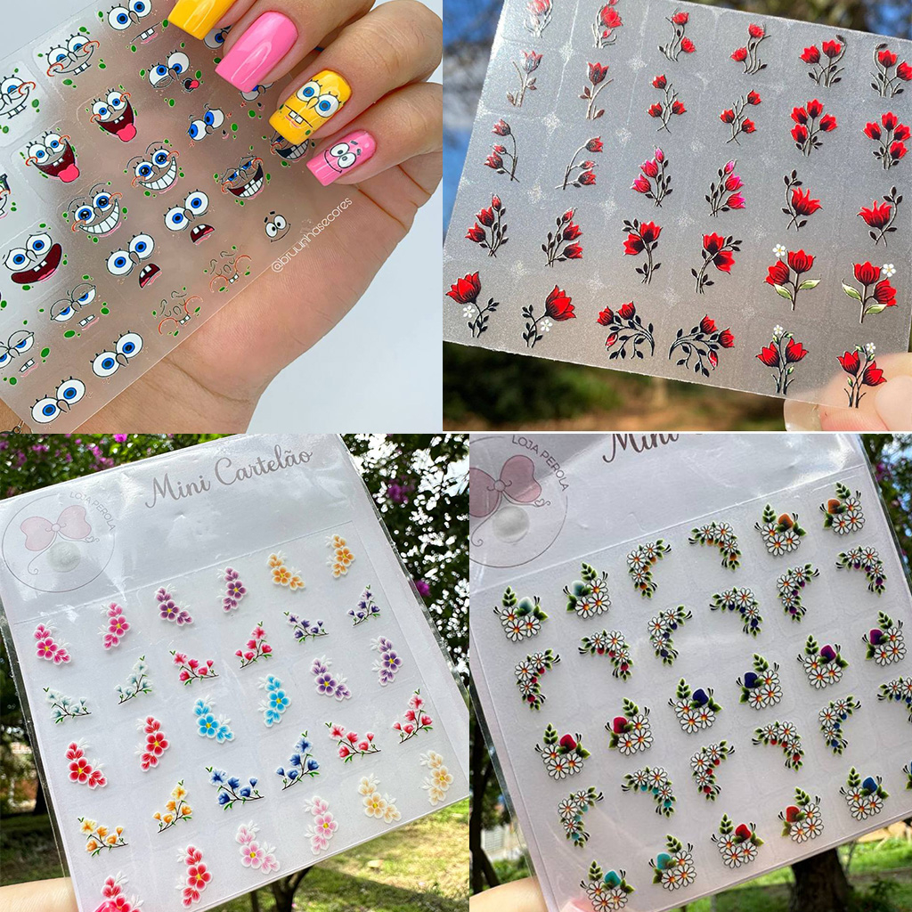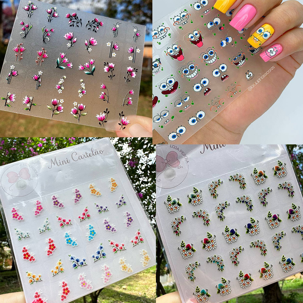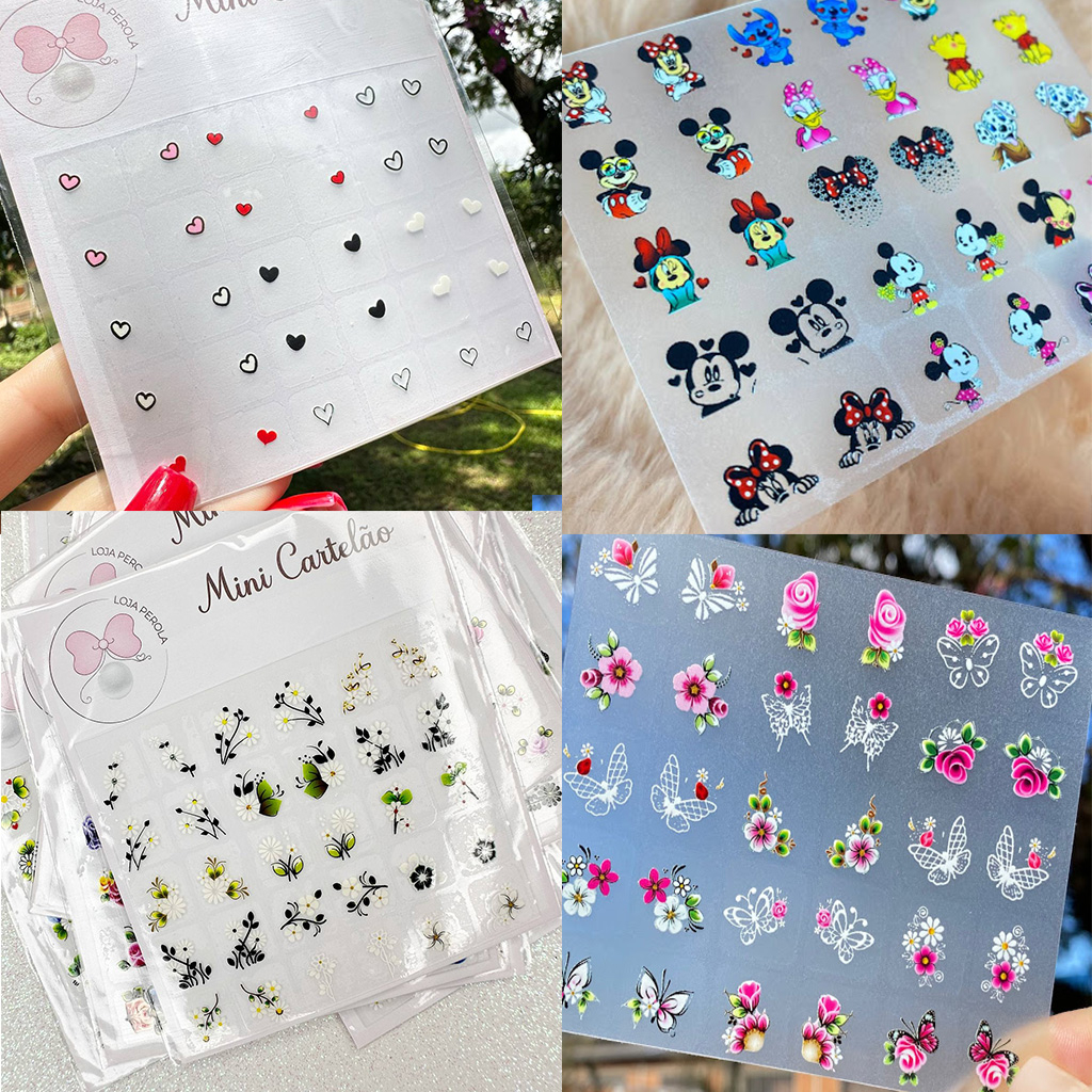 120 Adesivos de Unhas 3D Modelos Exclusivos Películas 3D - 4 MINI CARTELAS